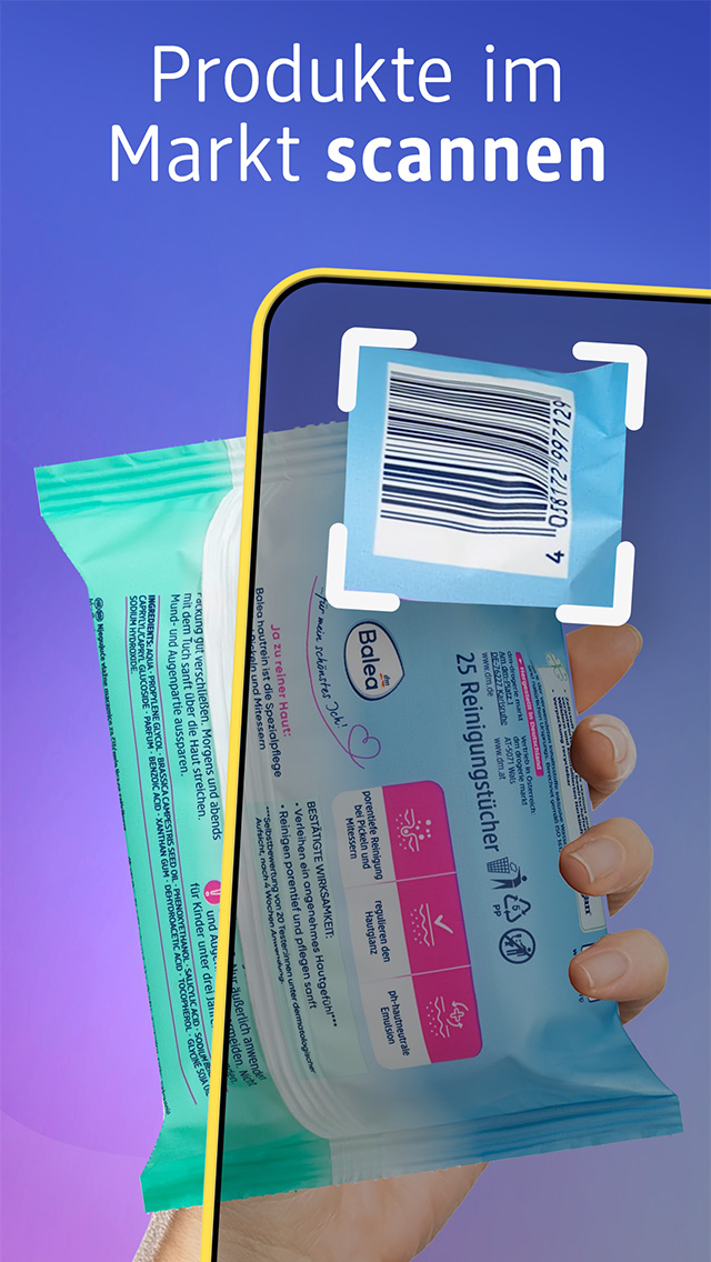 1. Sie ermöglicht einfaches und handliches Einkaufen, mit der Option, die App mit Ihrem bestehenden Mein dm und PAYBACK Konto zu verbinden.