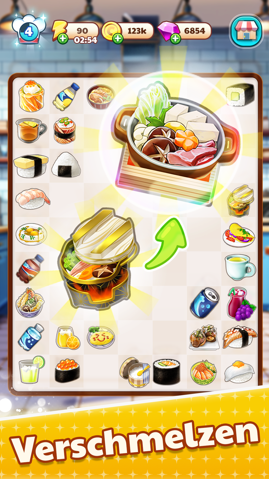 Enthülle die Einrichtung, entferne den Staub und renoviere das Restaurant mit neuen Möbeln, Dekorationen und einer neuen Speisekarte durch Zusammenfügen von Gegenständen. Gestalte dein Lokal neu und beobachte, wie es sich von einem alten und verwahrlosten Chaos in ein Michelin-würdiges Restaurant verwandelt. Bedienen im Restaurant ist so eine wahre Freude.