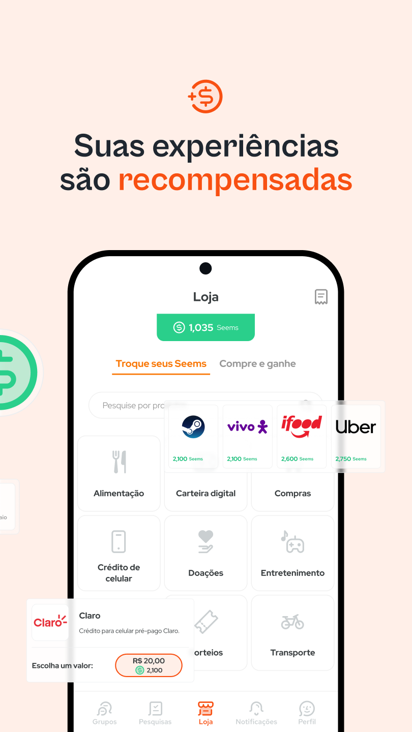 MeSeems: pesquisa e recompensa