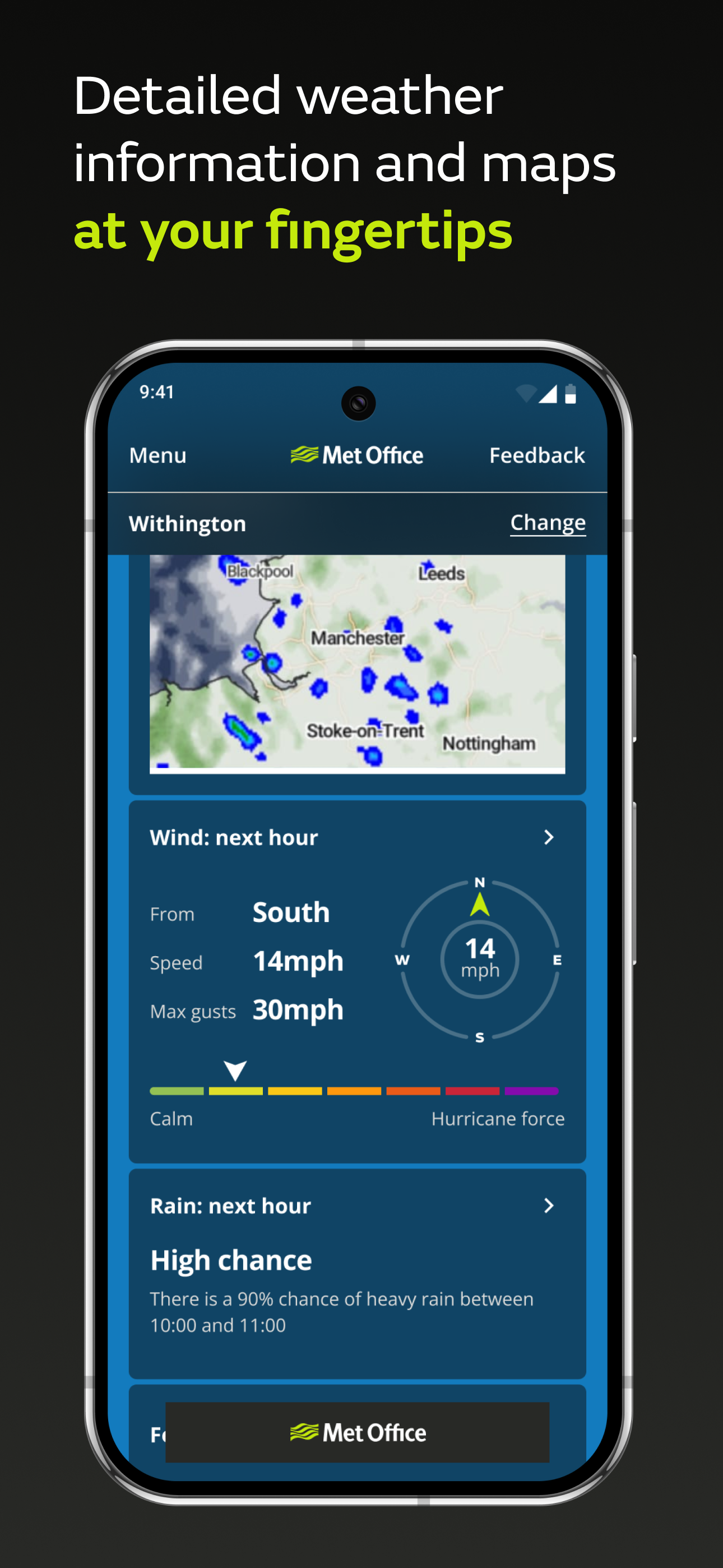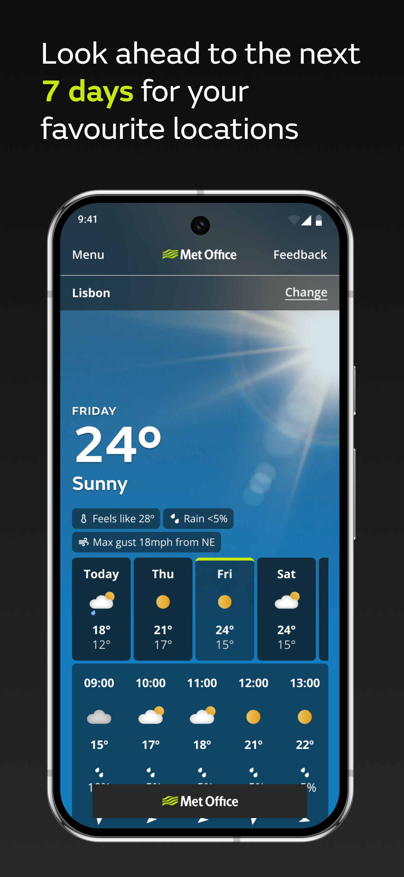 Planen Sie Ihren Tag sorgenfrei mit detaillierten stündlichen und täglichen Vorhersagen, die alles von Regen, Wind und Temperatur bis hin zu UV-Index und Pollenbelastung abdecken. Ob Sie nur eine kurze Aktualisierung oder eine vollständige 7-Tage-Vorhersage benötigen – die Met Office App liefert Ihnen die zuverlässigsten Wetterinformationen für Ihre Region.
