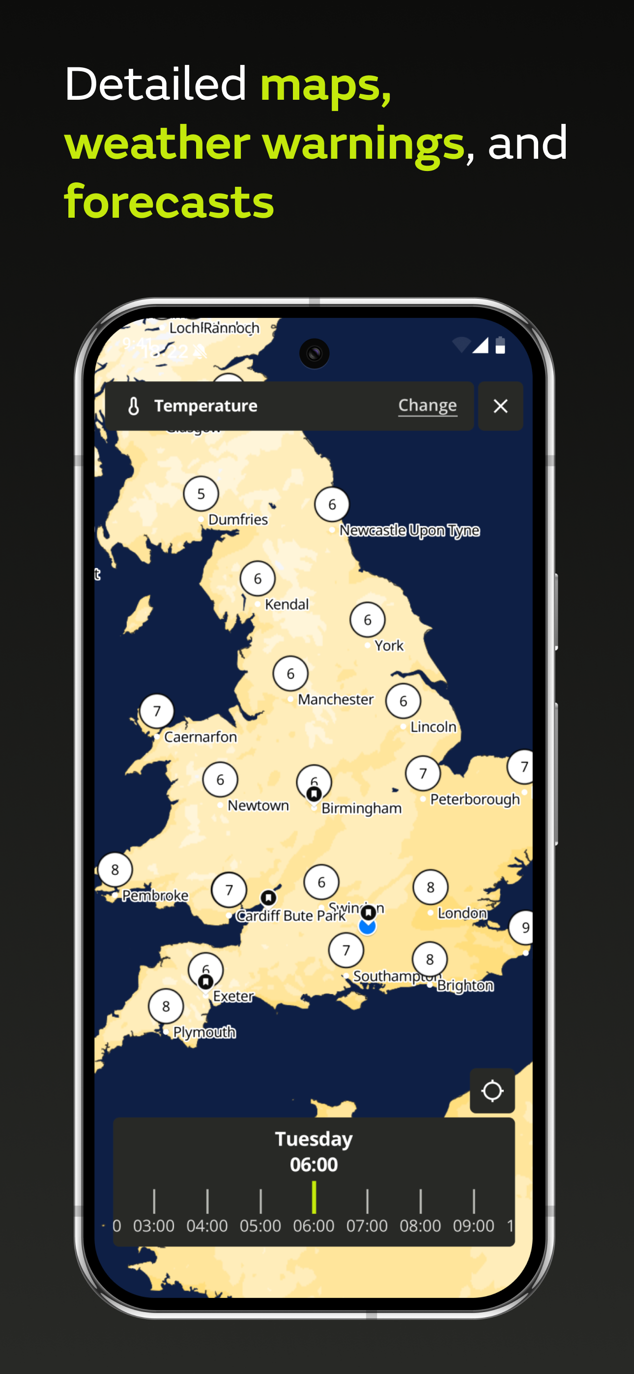 Verfolgen Sie die sich ändernden Bedingungen mit interaktiven Wetterkarten, darunter Niederschlagsradar, Bodenluftdruckkarten für Großbritannien und Unwetterwarnungen. Unsere Echtzeitwarnungen informieren Sie über Schnee, Gewitter, starke Winde, Eis und Nebel – damit Sie überall sicher unterwegs sind.