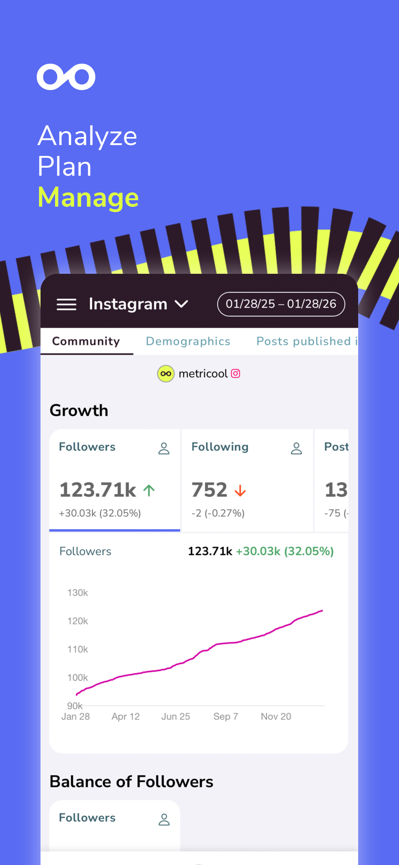 Metricool ist das ultimative All-in-One-Tool, mit dem Sie Ihre Präsenz in den sozialen Medien analysieren, verwalten und ausbauen können. Es vereinfacht Ihre Arbeit, automatisiert Ihre Prozesse und vereint all Ihre Tools an einem intuitiven Ort, wodurch Sie die nötige Zeit gewinnen, um sich auf Ihre Strategie zu konzentrieren.