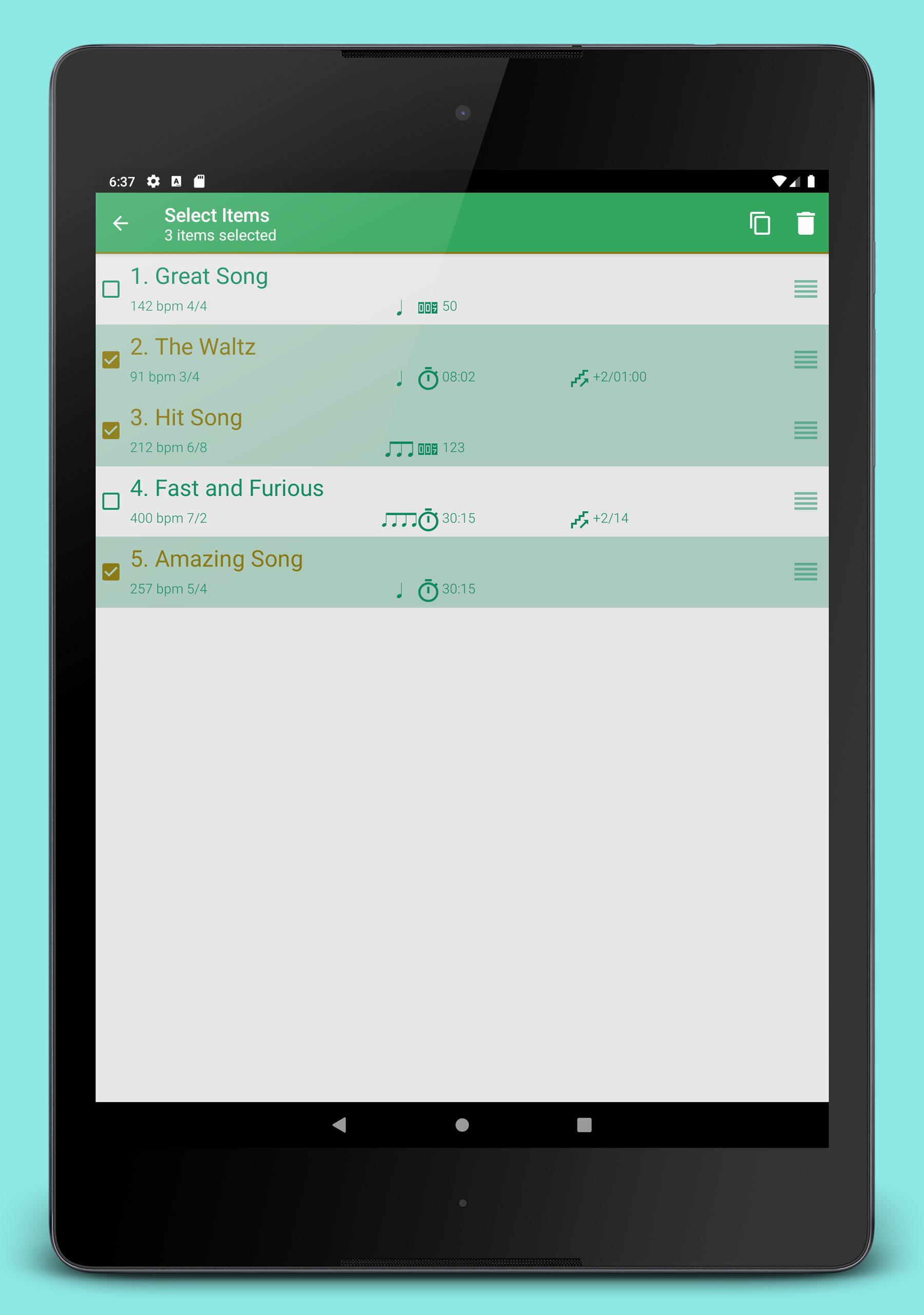 Tempo wurde von Apple auf der maßgeblichen iTunes-Landing-Page als “neu und bemerkenswert” sowie als “Favorit der Mitarbeiter” beschrieben. Ihre Engine ist von Grund auf ausgerichtet auf Präzision und Stabilität. Tempo läuft selbst dann weiter, wenn das Gerät gesperrt ist, was sie zu einer nützlichen Hilfe beim Live-Schlagzeugspielen macht. Tempo eine innovative Oberfläche, die zwischen fünf unterschiedlichen Modi umschalten kann: Grundlage, Vorstellung, Setlist, Probe und Auftritt. Jeder Modus beinhaltet eine unterschiedliche Kombination an Funktionen, die für die jeweilige Aufgabe optimiert sind. Funktionen: Konfiguration • 30 verschiedene Taktsignaturen, einschließlich zusammengesetzte und komplexe Takte: 1-13/2, 1-13/4, 3/8, 6/8, 9/8, 12/8 • 6 Rhythmusmuster für einfache Takte und 3 für zusammengesetzte Takte • Passen Sie Betonungen an oder schalten Sie Schläge aus, um komplexere Rhythmen zu erzeugen • Tempo-Antipp-Funktion • Tempobereiche von 10 bis 400 • Visuelles Feedback in Form von pulsierenden LEDs Setlisten • Speichern Sie Vorlagen in mehreren Setlists • Erweiterte Setlisten-Verwaltung, einschließlich Suche, Überschreiben des ausgewählten Songs, Kopieren zwischen Setlists und Mehrfachlöschung • Schnellen Bearbeiten • Teilen von Setlists per E-Mail Erfassungs- und Automatik-Modul • Nachverfolgung der Anzahl an gespielten Takten oder zeitliche Planung der Proben • Der Coach-Modus wechselt zwischen nicht stummen und stummen Takten • Automatischer Wiedergabestopp bei Erreichen des Limits • Automatische Anpassung des Tempos um X BPM alle X Taktstriche oder nach einer Zeit von X Ton • Wählen Sie aus 12 Klangsets, einschließlich einem, das für Live-Schlagzeug-Click-Tracks optimiert ist • Lautstärkeregelung • Multitasking-Unterstützung: spielt im Hintergrund mit Ton aus anderen Apps Verschieden • Italienische und Klassische Metronom Tempobezeichnungen • Steuern Sie Setlisten, tempo und Wiedergabe mit AirTurn • 5 Farbgebungen