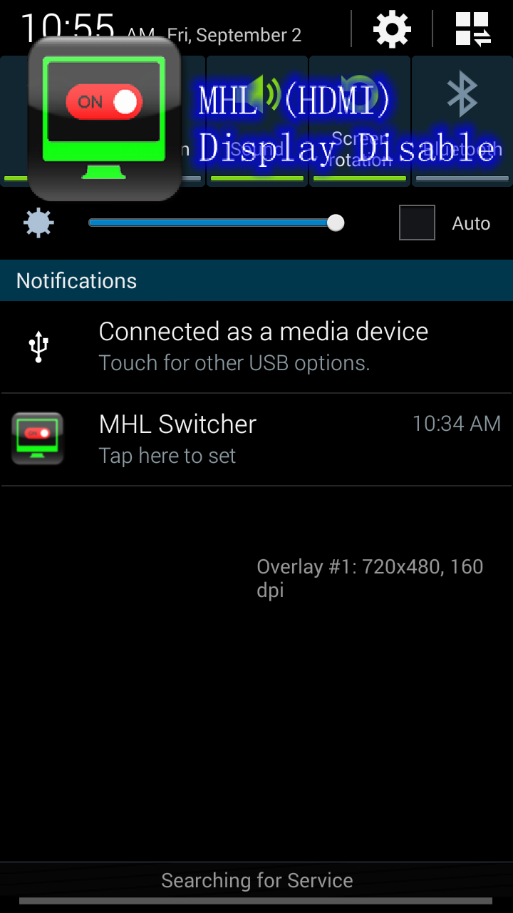 MHL (HDMI) Switch is een widget om de MHL (HDMI) / miracast / chromecast / ezcast / mirroring-uitgang te bedienen, u kunt het TV-signaal in de juiste tijd uitzetten.