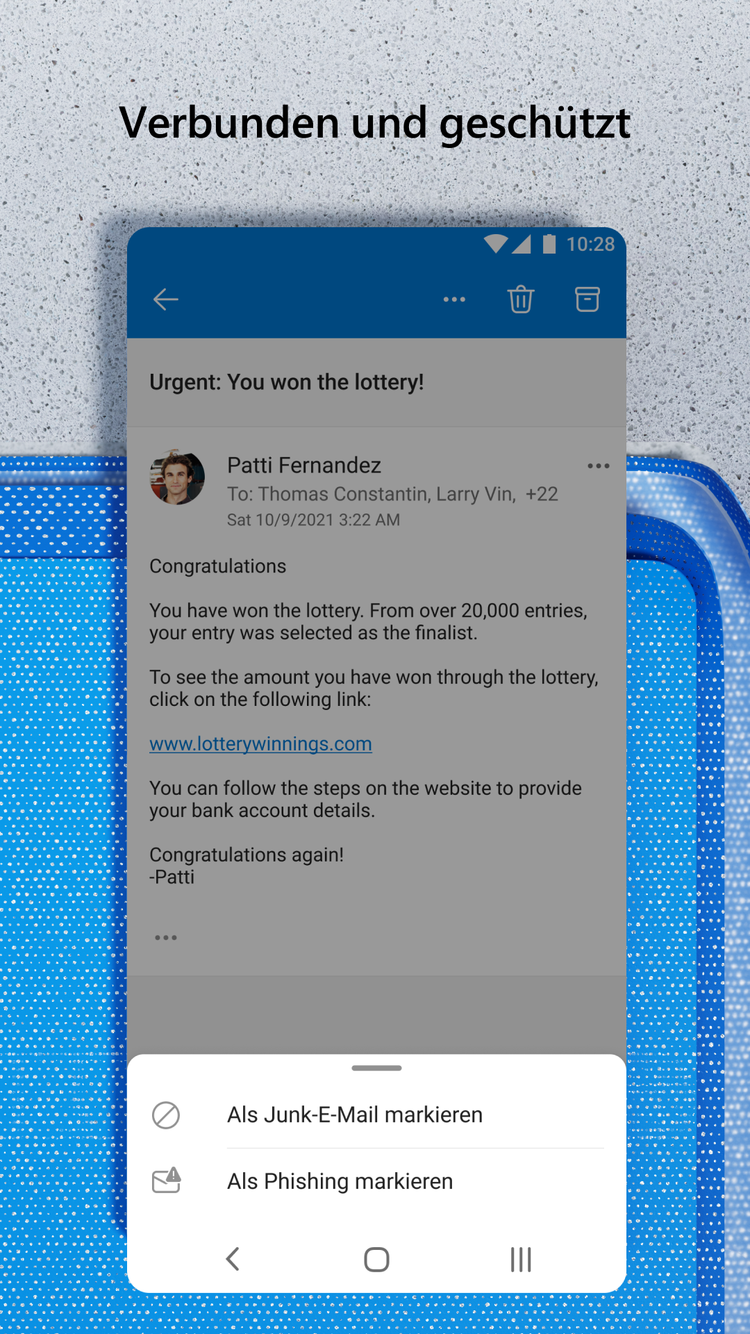 E-Mail-Verwaltung mit schneller Leistung, die für Ihr Smartphone entwickelt wurde. Microsoft Outlook Lite bietet alle Ihre bevorzugten E-Mail-, Kalender- und Kontaktfunktionen in einer kleinen App, die für die Arbeit auf Smartphones mit geringen Ressourcen optimiert ist. Behalten Sie den Überblick über Ihren Posteingang, bleiben Sie mit Ihren Kontakten in Verbindung, und vermeiden Sie Spam – all dies mithilfe von Outlook Lite. Erledigen Sie mehr auf einfache und schnelle Weise in jedem Netzwerk. Ihr Posteingang war noch nie intelligenter. Outlook Lite ermöglicht es Ihnen, mehr über einen Posteingang zu erledigen und so mehr Einzelpersonen, Schulen, Universitäten und kleine Unternehmen mit Mobiltelefonen mit geringen Ressourcen zu unterstützen. Unabhängig davon, ob Sie die E-Mails Ihres Kleinunternehmens, Ihre Schul-E-Mails oder persönlichen E-Mails verbunden haben, schützt Outlook Lite Sie mit Sicherheit für alle Ihre Anforderungen. Microsoft Outlook Lite ist der E-Mail-Manager für alle Ihre Bedürfnisse. Verwenden Sie Outlook Lite, um unterwegs auf E-Mails zuzugreifen, E-Mails zu senden, Besprechungen zu planen und zu buchen sowie Ihren Posteingang an einem einzigen Ort zu organisieren. Outlook Lite wurde für kleinere Telefonspeicher entwickelt und ist für Ihre Bedürfnisse optimiert und nur für Sie konzipiert. Verbinden Sie Ihre E-Mail-Konten über Outlook Lite, und bleiben Sie unterwegs in Verbindung. Outlook Lite funktioniert mit Outlook-, Hotmail-, Live-, MSN-, Microsoft Exchange Online- und Google-Konten. SICHERE E-MAIL-VERWALTUNG MIT KLEINEM SPEICHER • Klein – Die Mini-App hat eine Downloadgröße von nur etwa 5 MB und verwendet extrem wenig Speicherplatz auf Ihrem Smartphone • Schnell – Optimiert für die schnelle Ausführung auf allen Geräten, einschließlich Geräten mit 1 GB RAM • Geringer Akkuverbrauch – Leicht auf Ihrem Smartphone, um Akku zu sparen • Alle Netzwerke – funktioniert auch in 2G- und 3G-Netzwerken gut OUTLOOK LITE-FEATURES: Posteingangs-Manager – alles organisiert • Posteingang mit Relevanz: Lesen Sie E-Mails, senden Sie E-Mails an Freunde und Kollegen, und sehen Sie sich an, was am wichtigsten ist. • Organisieren Sie Ihre E-Mails mit Fähnchen, Ordnern und mehr. • Der Postfachorganisator gruppiert zur einfacheren Nachverfolgung E-Mails und Unterhaltungen mit demselben Betreff. Kalenderorganisator – Besprechungs- und Zeitplanverwaltung • Übernehmen Sie die Kontrolle über Ihre Zeit mit einem organisierten Kalender. • Erstellen Sie Ihre Online-Videoanrufe und Besprechungen mit Skype, und nehmen Sie daran teil. • Antworten Sie auf Einladungen aus Ihrem Posteingang und senden Sie personalisierte Kommentare. Produktivitätslösungen – Intelligenz überall • Verwenden Sie vorgeschlagene Antworten, um schnell zu antworten. • Kontakte werden direkt in Outlook Lite verwaltet. Stellen Sie eine Verbindung mit jedem und allen her. • Der E-Mail-Organisator gruppiert zur einfacheren Nachverfolgung E-Mails und Unterhaltungen mit demselben Betreff. Spamblocker und E-Mail-Schutz – sicher und geschützt • Microsoft Outlook Lite wurde mit Sicherheit erstellt, der Sie vertrauen können. • Einfaches, sicheres Anmelden zur Authentifizierung und zum Schützen Ihrer Identität. • E-Mail-App mit integriertem Schutz vor Viren und Spam-E-Mails. • Die Junk-E-Mail-Erkennung sendet alle potenziellen Bedrohungen an den Ordner. • Sicherheit und Datenschutz von Microsoft sorgen für einen sicheren Schutz von E-Mails, Kalendern, Kontakten und Dateien. Effiziente SMS-Nachrichten (Nur in Indien verfügbar) • Lesen, schreiben und senden Sie Textnachrichten direkt aus der App. • Organisieren Sie Ihre Nachrichten in hilfreiche Kategorien (Transaktionen, Werbeaktionen, Persönlich). • Verwenden Sie Nachrichten, um Ihre Lieblingsartikel oder Orte in der Nähe zu teilen und mit anderen zu interagieren, während Sie die App verwenden. Verwalten Sie Ihre Kontakte, E-Mails, Zeitpläne und mehr mit Outlook Lite.