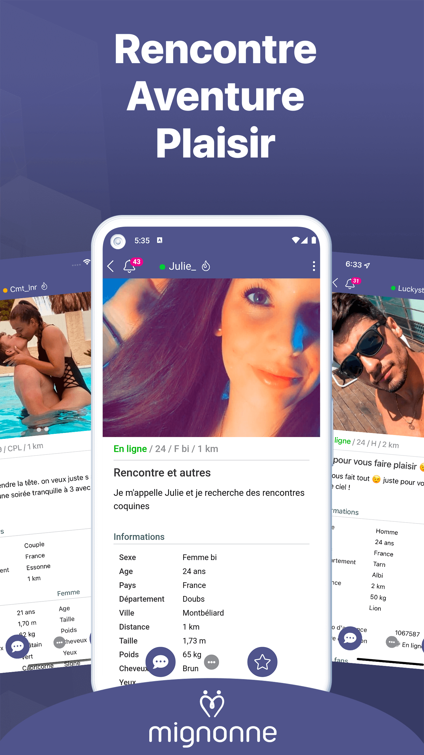 Testen Sie Mignonne kostenlos. Eine unbegrenzte und anonyme VIP-Option für alleinstehende Männer. Für noch mehr Kontakte, Vorteile und mehr Diskretion ganz einfach!