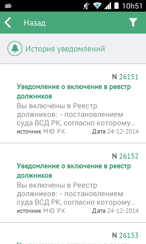 - ЖҚЕ бұзғаны үшін айыппұлдар туралы, борышкерлер тізіліміне қосу, балабақша кезегін өзгерту туралы PUSH және/немесе SMS форматындағы хабарламалар;