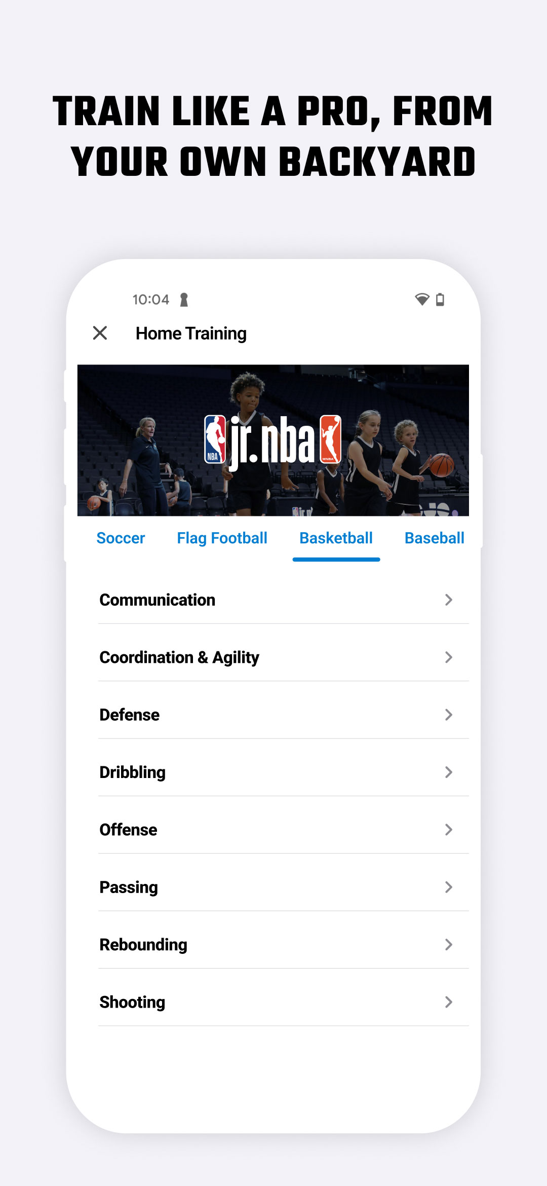 MOJO hat mit der Jr. NBA, dem offiziellen Jugend-Basketball-Teilnahmeprogramm der NBA und WNBA, zusammengearbeitet, um mehr als 120 Aktivitäten zu entwickeln, die im Training oder zu Hause wiederholt werden können, zusätzlich zu Spielen und Übungen, um die Entwicklung auf dem Platz voranzutreiben.