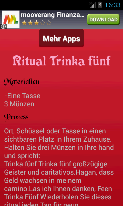 Money Spells (Paketname: com.agredroid.moneyspells) wird von agredroid entwickelt und die neueste Version von Geld Zaubersprüche 1.0 wurde am 20. März 2016 aktualisiert. Geld Zaubersprüche liegt in der Kategorie von Unterhaltung. Sie können alle Apps von dem Entwickler der Geld Zaubersprüche durchsuchen und 66 alternative Apps zu Geld Zaubersprüche auf Android finden. Derzeit ist diese APP kostenlos. Diese App kann auf Android 2.2+ auf APKFab oder Google Play heruntergeladen werden. Alle APK/XAPK Dateien auf APKFab.com sind original und 100% sicher, schnell herunterzuladen.