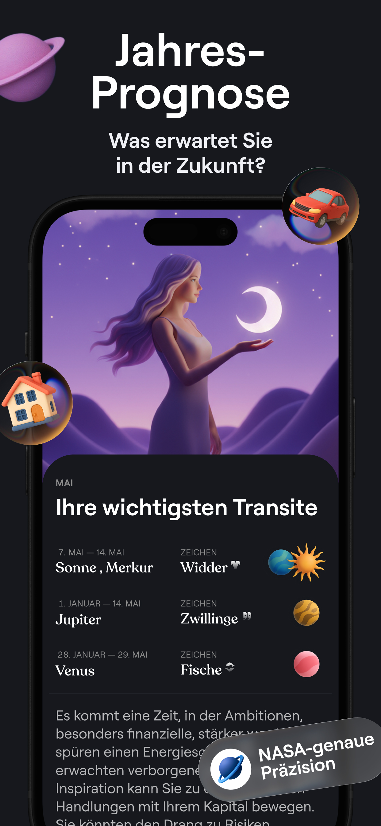 Chatten Sie mit der Astrologin in der App über Karriereschritte, Reisedaten oder Selbstfürsorge und erhalten Sie in Sekundenschnelle eine klare, auf Ihrem Geburtshoroskop basierende Antwort.