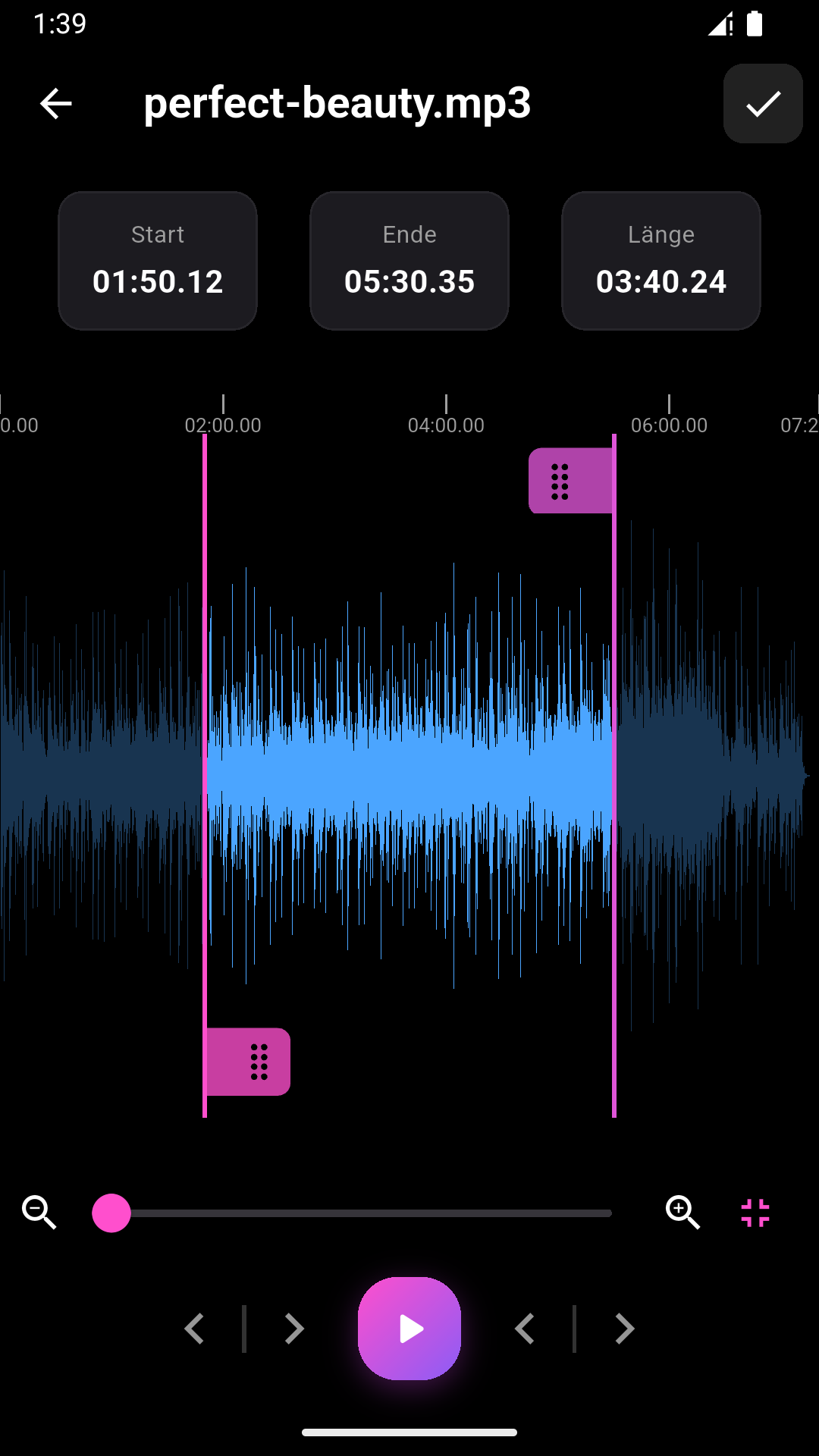 MP3-Cutter und Audio-Merger (Paketname: com.clogica.mp3cutter) wird von Clogica entwickelt und die neueste Version von Musik schneiden zusammenfügen 26.0.27 wurde am 13. April 2026 aktualisiert. Musik schneiden zusammenfügen liegt in der Kategorie von Musik & Audio mit der Funktion von Identifying Songs. Sie können alle Apps von dem Entwickler der Musik schneiden zusammenfügen durchsuchen und 136 alternative Apps zu Musik schneiden zusammenfügen auf Android finden. Derzeit ist diese APP kostenlos. Diese App kann auf Android 7.0+ auf APKFab oder Google Play heruntergeladen werden. Alle APK/XAPK Dateien auf APKFab.com sind original und 100% sicher, schnell herunterzuladen.
