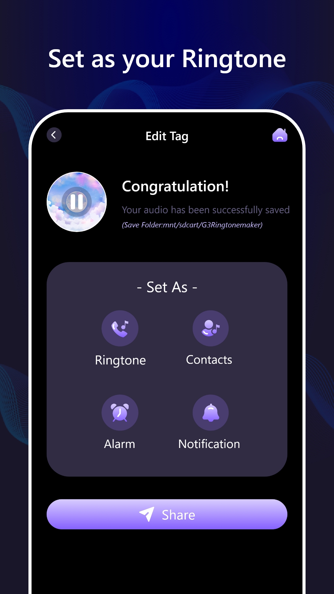 - Easily share your favorite ringtones with your friends