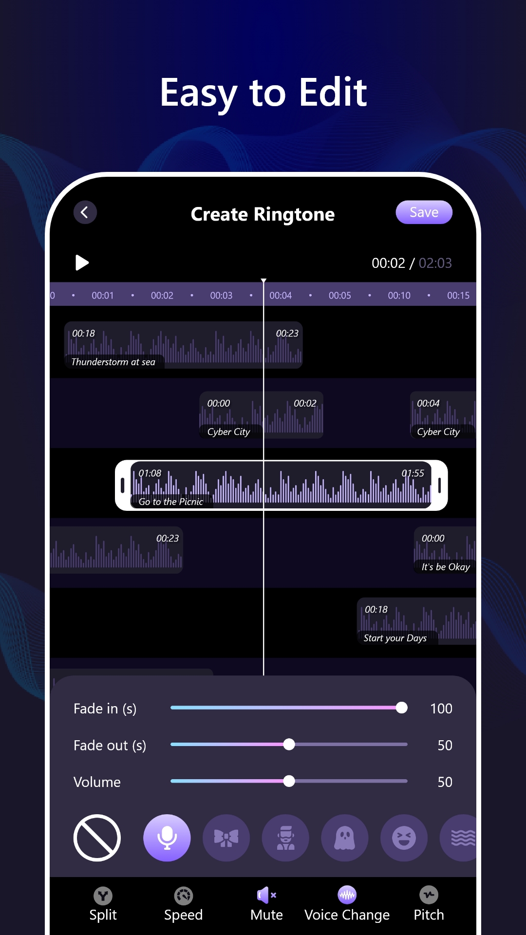 Voice recording feature, sound combined with editing, copying, cutting, and volume adjustment tools create super unique phone ringtones that only you can have.