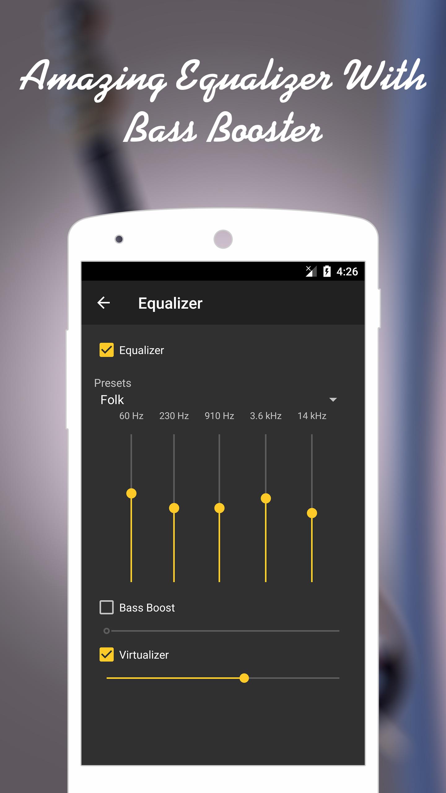 Mp3 Player helps you to search, navigate and manage your music in one place. It is a fast and powerful music player with elegant design. This Mp3 Player supports almost all music file type such as mp3, wav, flac, raw and other audio formats. Mp3 Player has a powerful build-in Equalizer, Bass Boost, Virtualizer to improve sound quality. It provides you with 9 awesome presets: Classical, Dance, Flat, Folk, Heavy Metal, Hip Hop, Jazz, Pop, Rock. Key Features: - Navigate by albums, artists, genres, playlists and folders - Quickly search your favourite song - Cut song and make it as ringtone, notification or alarm - Powerful Equalizer, Bass Boost, Virtualizer - Sleep timer - Manage play queue - Edit tags - Sort - Edit playlist - Widget - Control music on lock screen - Control music on notification Note: This app is a local music player. You can not play music online or download any music in this app.