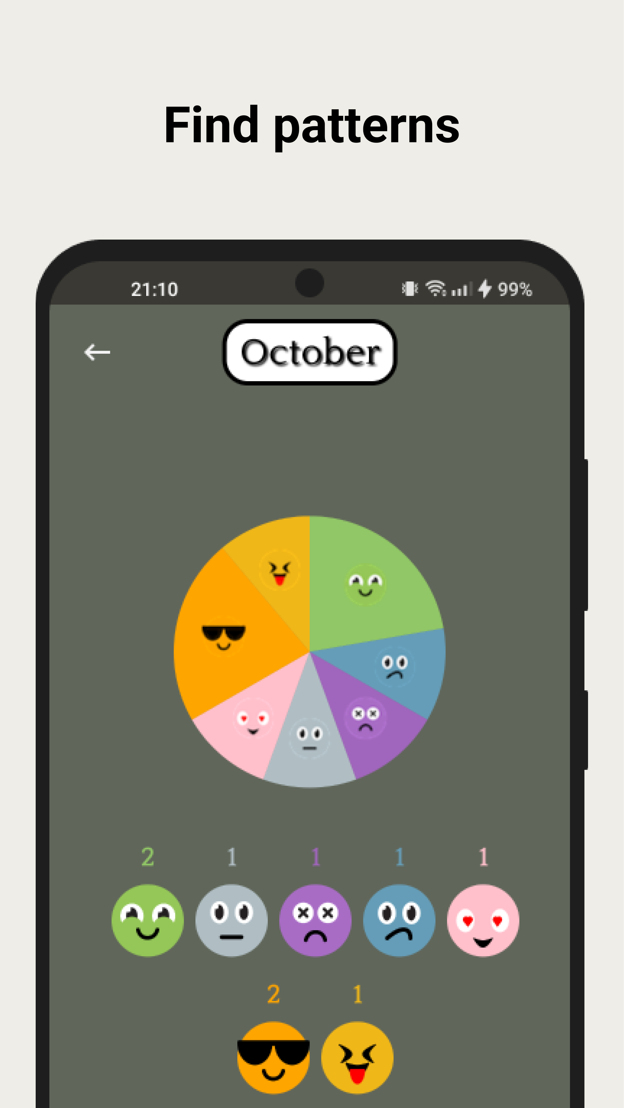 Willkommen bei Mudy: Emoji Mood Tracker – dem ultimativen Tool für alle, die ihr emotionales Wohlbefinden überwachen möchten! Unsere App kombiniert die Leistung eines Emoji-Trackers, eines täglichen Stimmungs-Trackers, eines Emotions-Trackers, eines Gedankenjournals, eines Stimmungskalenders, eines Glücks-Trackers und eines Tagebuchs mit Sperre in einer benutzerfreundlichen Plattform. Mit Mudy können Sie Ihre täglichen Stimmungen mit unserem intuitiven Emoji-Tracker protokollieren. Die App bietet eine Reihe von Emoticons zur Auswahl, mit denen Sie Ihre Gefühle auf einen Blick erfassen können. Sie können auch unseren täglichen Stimmungstracker verwenden, um Ihren gesamten emotionalen Zustand aufzuzeichnen und Ihnen dabei zu helfen, Muster oder Trends im Laufe der Zeit zu erkennen. Mit unserem Emotions-Tracker können Sie bestimmte Gefühle wie Angst oder Glück verfolgen und erhalten so einen detaillierteren Überblick über Ihren emotionalen Zustand. Mit unserer Gedankentagebuch-Funktion können Sie Ihre Gedanken und Gefühle in einem privaten, sicheren Raum aufzeichnen und sicherstellen, dass Ihre Daten vor neugierigen Blicken geschützt sind. Unser Stimmungskalender ist das perfekte Tool, wenn Sie nach einer Möglichkeit suchen, Ihren emotionalen Zustand im Laufe der Zeit zu visualisieren. Es bietet eine klare visuelle Darstellung Ihrer Stimmungen und macht es einfach, Trends und Muster zu erkennen. Und wenn Sie sich auf die positiven Aspekte Ihres Lebens konzentrieren möchten, ist unser Happiness Tracker das ideale Tool. Verwenden Sie es, um die Dinge zu protokollieren, die Sie glücklich machen, und sehen Sie, wie sich Ihre Stimmung mit der Zeit verbessert. Schließlich können Sie mit unserem Tagebuch mit Sperrfunktion sicher sein, dass Ihre Daten sicher und geschützt sind. Sie können Ihr Tagebuch mit einer PIN oder einem Fingerabdruck sperren, um sicherzustellen, dass Ihre Gedanken und Gefühle privat bleiben. Warum also warten? Laden Sie Mudy: Emoji Mood Tracker noch heute herunter und verfolgen Sie Ihr emotionales Wohlbefinden wie ein Profi!