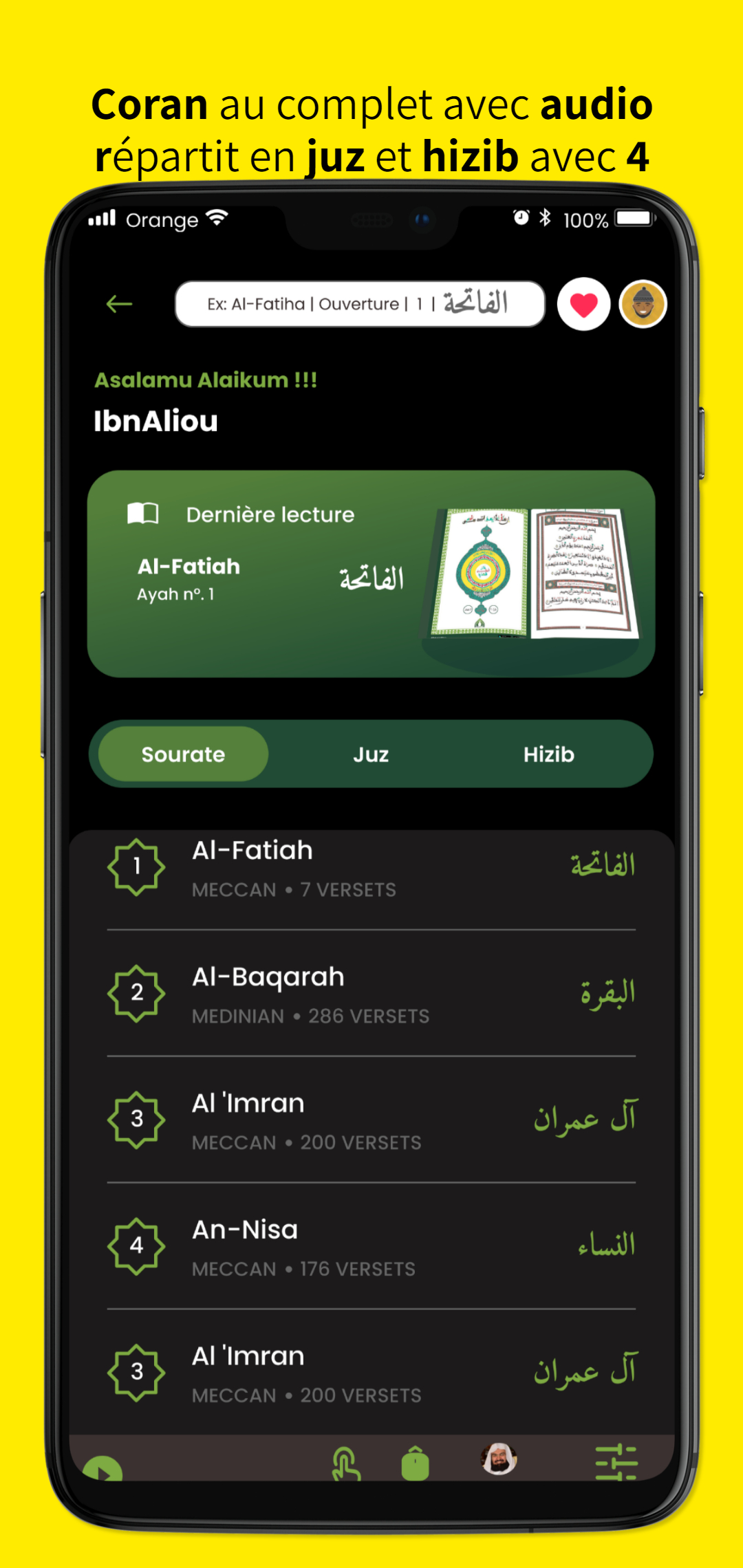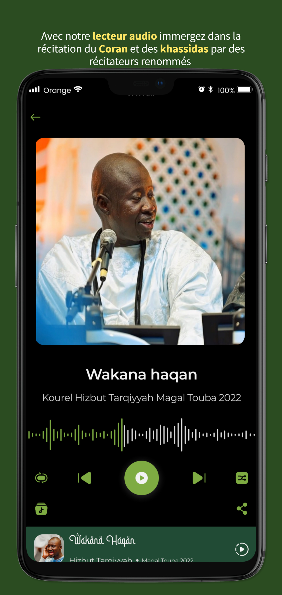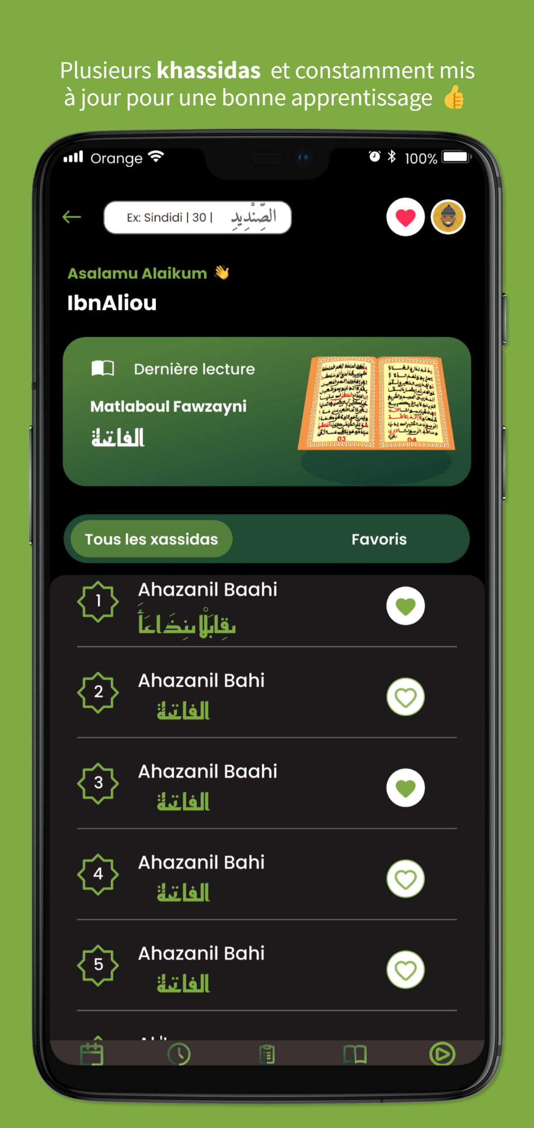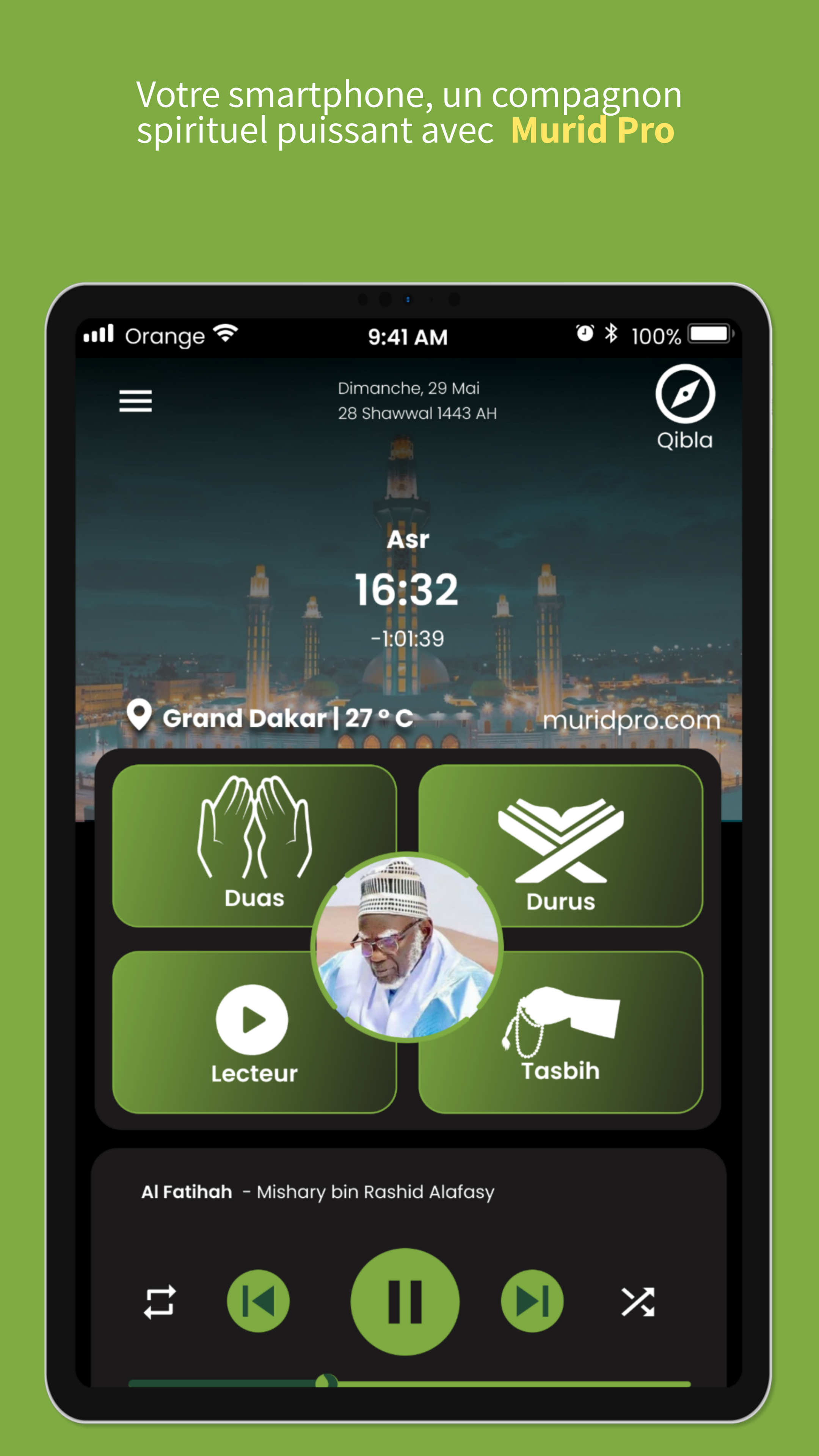 Murid Pro ist eine Anwendung, die Muslimen in ihrem täglichen Leben hilft, indem sie ihnen ermöglicht, den Koran und die Khassidas (Schriften von Scheich Ahmadou Bamba MBACKE) mit Audio-Rezitationen zu lernen. Die Anwendung gibt Ihnen Nafilas während des Monats Ramadan, sie bietet Benachrichtigungen für Gebetszeiten und Adhan, je nach Ort zeigt sie dank der Qibla-Funktionalität auch die Richtung der Kaaba an.