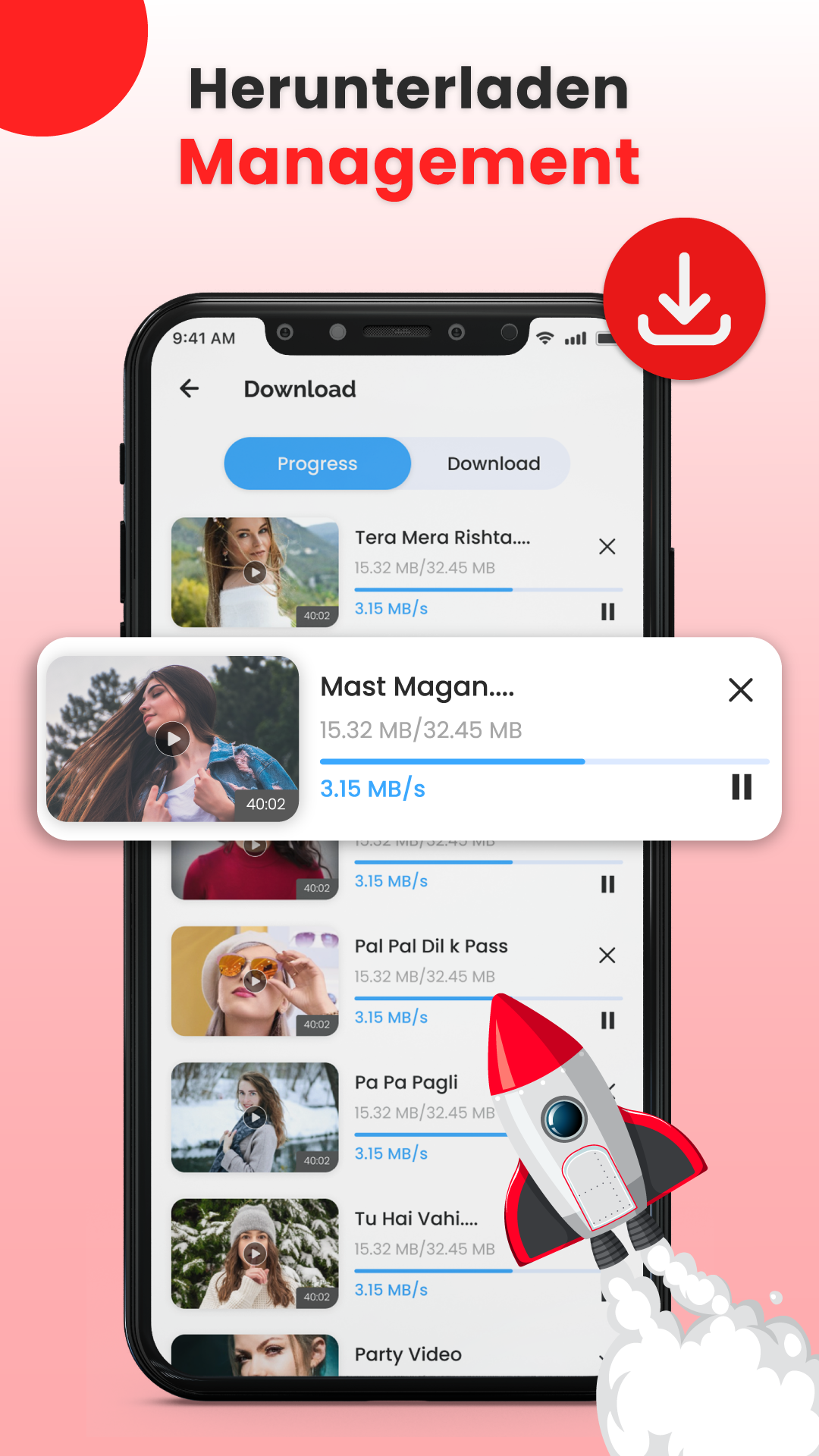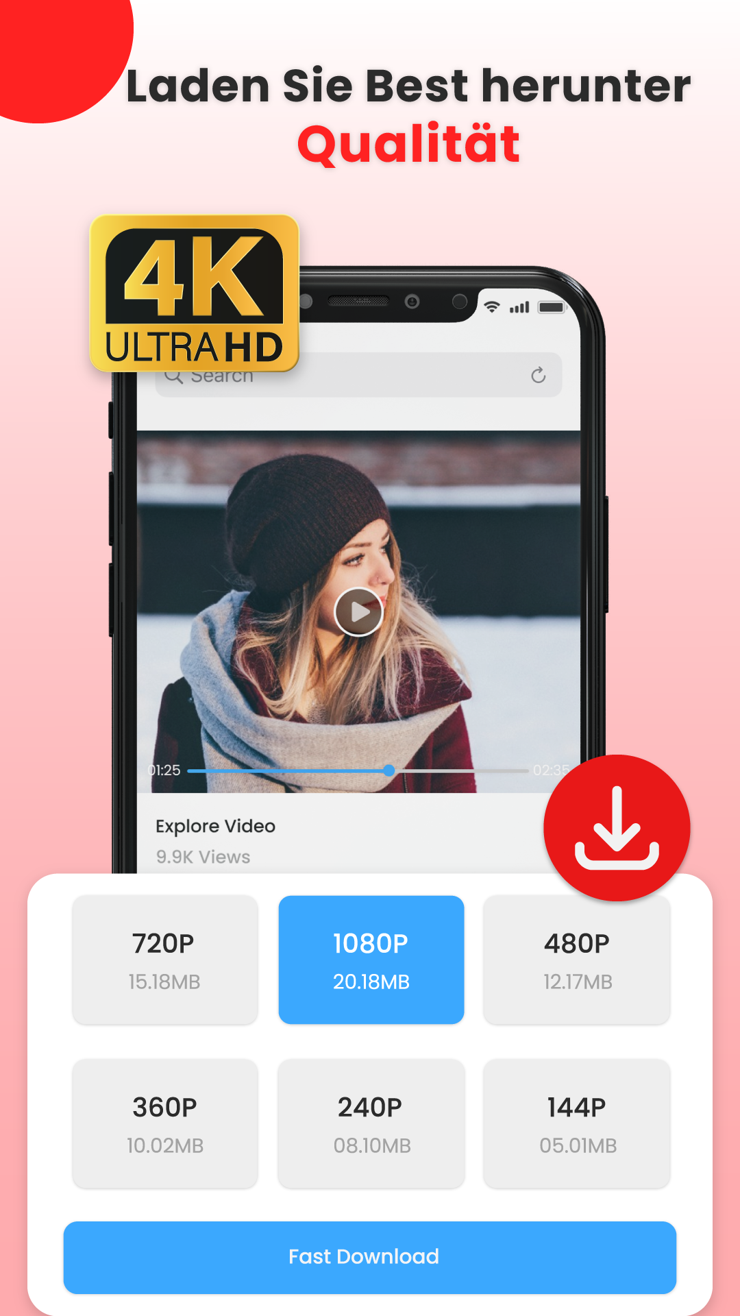 Laden Sie Videos in Sekundenschnelle herunter! Speichern, teilen und ansehen mit dem schnellen All Video Downloader und Saver.