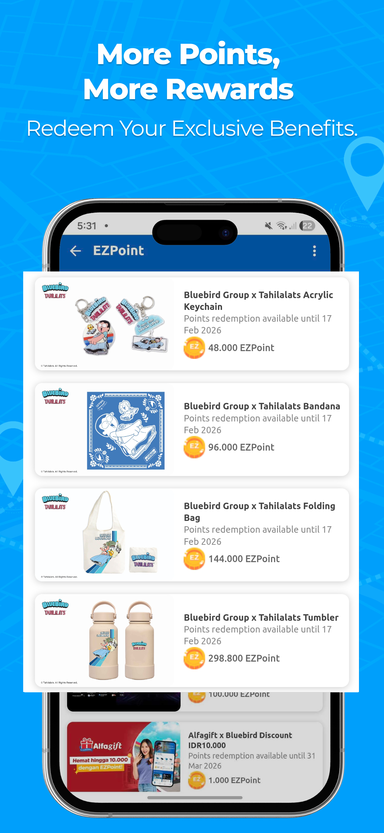 Willkommen bei MyBluebird: Ihrem zuverlässigen Transportpartner! Schließen Sie sich Tausenden zufriedenen Nutzern an und buchen Sie Fahrten, mieten Sie Autos oder versenden Sie Pakete mit MyBluebird, der zuverlässigen App für Taxi, Shuttle und Lieferung. Sparen Sie noch mehr mit Sonderangeboten und bargeldlosem Bezahlen über EZPay. Profitieren Sie von Festpreisbuchungen, Flughafentransfers und der Anmietung umweltfreundlicher Elektrofahrzeuge wie BYD. MyBluebird macht jede Fahrt komfortabel, sicher und erschwinglich – fahren Sie noch heute! Die neueste Version von MyBluebird bietet innovative Funktionen für mehr Komfort, Bequemlichkeit und ein attraktives Preis-Leistungs-Verhältnis bei jeder Fahrt. Mit EZPoint profitieren Sie von mehr Vorteilen – von Sonderangeboten und Rabatten bis hin zu exklusiven Angeboten – je mehr Sie fahren. Top-Funktionen: 1. EZPay – Bargeldlos bezahlen von überall. Steigen Sie von überall ein und bezahlen Sie bargeldlos. Selbst im Taxi können Sie mit EZPay sofort auf bargeldloses Bezahlen umsteigen. Sie müssen sich nicht um Bargeld kümmern – geben Sie einfach Ihre Taxinummer in die EZPay-Funktion der MyBluebird-App ein und bezahlen Sie digital mit E-Wallets. Profitieren Sie von Sonderangeboten und Rabatten für eine günstigere Fahrt. 2. All-in-One-Service: MyBluebird bietet eine komplette Transportlösung in einer App für alle Ihre Reisebedürfnisse: • Taxi: Komfortable und sichere Fahrten mit Bluebird- und Premium-Silverbird-Taxis, einschließlich der luxuriösen Toyota Alphard-Flotte. • Goldenbird Autovermietung: Eine flexible Option für Geschäftsreisen oder Fernreisen, jetzt auch mit Elektrofahrzeugen wie BYD, Denza und Hyundai IONIQ. • Paketzustellung mit Bluebird Kirim: Versenden Sie wichtige Pakete oder Dokumente sicher und schnell mit der Bluebird-Flotte. • Shuttle-Service: Eine praktische Wahl für effiziente Mobilität im Alltag. MyBluebird ist ideal für Online-Taxifahrer, die zusätzlichen Komfort und Sicherheit suchen. 3. Multi-Payment – Bar- und bargeldlose Optionen: MyBluebird gibt Ihnen die Freiheit, Ihre bevorzugte Zahlungsmethode zu wählen. Bargeld ist weiterhin verfügbar, Sie können aber auch mit verschiedenen bargeldlosen Optionen bezahlen, darunter Kreditkarten, eVoucher, Reisegutscheine, GoPay, ShopeePay, LinkAja, DANA, i.saku und OVO. Mit diesen Optionen wird das Buchen und Bezahlen einer Fahrt jederzeit reibungslos. 4. EZPoint – Je mehr Sie fahren, desto mehr Punkte sammeln Sie. Mit dem EZPoint-Treueprogramm sammeln Sie für jede Transaktion Punkte, die Sie gegen exklusive Prämien wie Reiserabatte, Sonderangebote, Konzertkarten, Hotelaufenthalte oder andere attraktive Preise einlösen können. 5. Aktion – Mehr sparen mit Sonderangeboten. Profitieren Sie von verschiedenen attraktiven Aktionen, exklusiven Rabatten und Cashback-Angeboten, um Ihre Fahrten günstiger zu gestalten. Bleiben Sie über die neuesten Angebote auf dem Laufenden, insbesondere wenn Sie häufig Online-Taxi fahren. 6. Abonnement – Mehr fahren, mehr sparen. Mit dem Abonnementservice werden Ihre Fahrten praktischer und günstiger! Erhalten Sie regelmäßige Rabatte und zusätzliche Vorteile basierend auf Ihrem gewählten Reisepaket. 7. Festpreis – Kennen Sie den Fahrpreis im Voraus. Schluss mit dem Rätselraten. Sie kennen den genauen Fahrpreis vor der Buchung und können so Ihre Fahrt transparenter und sorgenfreier gestalten – perfekt für alle, die vorhersehbare Preise ohne Überraschungsgebühren bevorzugen. 8. Chat mit dem Fahrer – Reibungslosere Kommunikation: Verbinden Sie sich ganz einfach über die In-App-Chat-Funktion mit Ihrem Fahrer. Senden Sie Standortdetails, geben Sie zusätzliche Anweisungen oder fragen Sie bequem und effizient nach Ihrem Fahrtstatus. 9. Vorausbuchung – Planen Sie Ihre Fahrten im Voraus: Planen Sie Ihre Fahrt flexibel und einfach im Voraus. Ideal für wichtige Termine oder zeitkritische Bedürfnisse: Diese Funktion hilft Ihnen, ein Taxi zu Ihrer Wunschzeit vorzubestellen. MyBluebird ist Ihre Taxibuchungslösung – vertrauenswürdig, zuverlässig und effizient. MyBluebird kombiniert den Komfort eines traditionellen Taxis mit der Bequemlichkeit einer Online-Buchung und bietet sichere, effiziente und günstige Fahrten – alles in einer App. Weitere Informationen finden Sie unter bluebirdgroup.com.