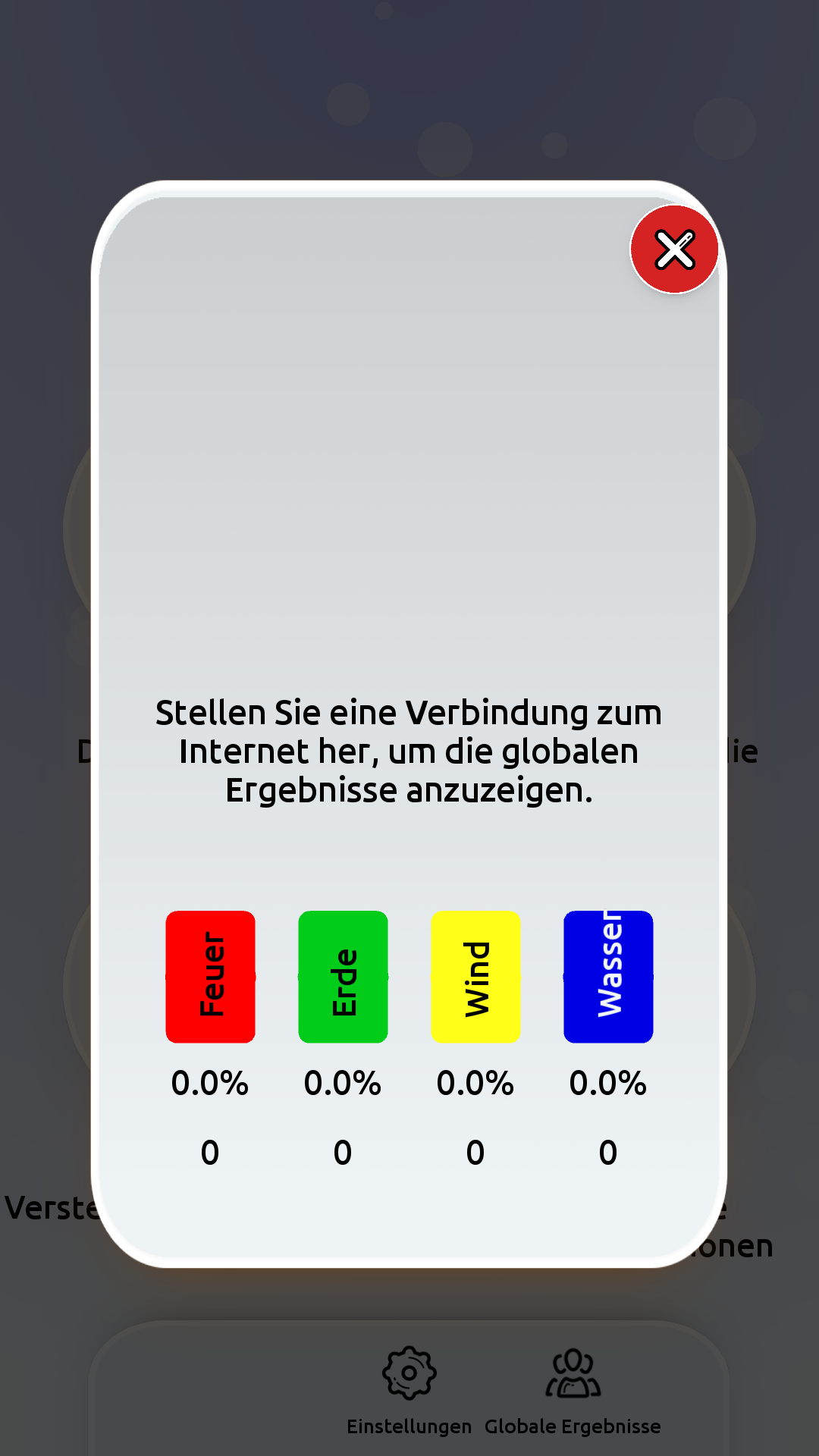 🌊 🌬 🌎 🔥 See the global results of each element. Now available in 10 languages: Arabic, Croatian, English, French, German, Hindi, Malagasy, Portuguese, Russian, and Spanish. Added 2 tie breaker questions to the quiz.
