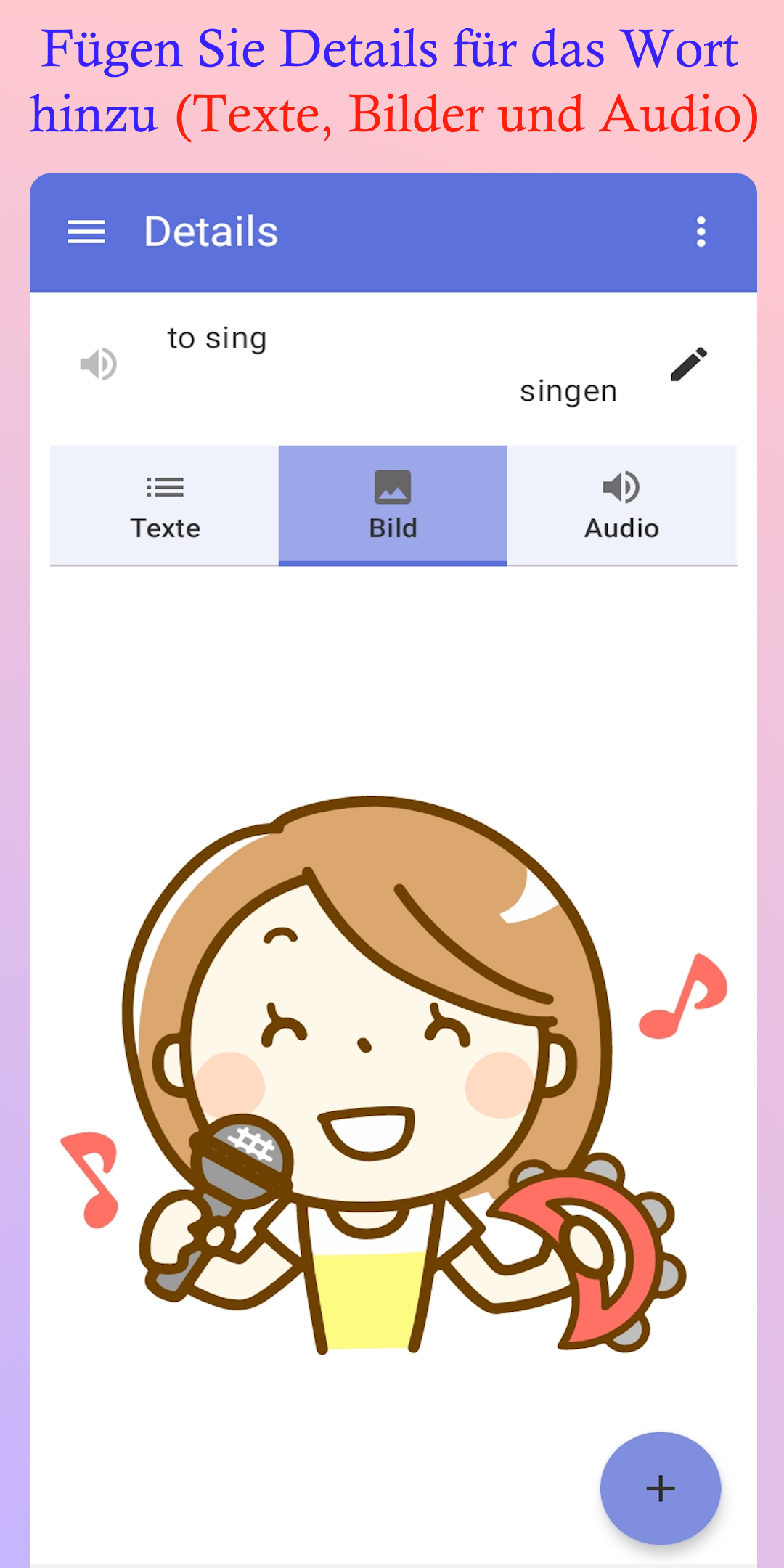 - den hinzugefügten Wörtern verschiedene Texte zuordnen (Definition, Konjugation, Deklinationen, Beispiele, etc.)