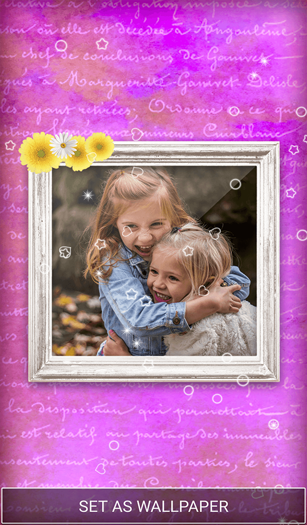Personalisieren Sie Ihr Telefon einfach mit Mein Foto Auf Live-Hintergrund! Diese einzigartige und super effiziente Software ermöglicht es Ihnen, Foto zu leben Wallpaper ohne Anstrengung zu konvertieren, ohne Kosten! Möchten Sie eine bewegte Bildtapete haben, die Ihre Selfie verziert mit schönen Hintergründen und glänzenden lebhaften Partikeln zeigt? Unser Fotothemahersteller ist hier, Ihnen zu helfen, Ihr Telefon in der bestmöglichen Weise zu verschönern - wählen Sie einen der vordefinierten bewegten Hintergründe oder fertigen Sie die Fotoprint-Tapete besonders an, indem Sie das pic von der Galerie, den Hintergrund, Art der bewegten Partikel, ihre Größe wählen , Geschwindigkeit, Betrag und Richtung der Bewegung. Nehmen Sie einen Selfie, oder haben Sie ein Foto Galerie im Hintergrund als Thema, und jeder wird wissen, dessen Telefon das ist, sobald sie auf dem Bildschirm zu sehen! Willkommen in der Familie der zufriedenen User von Mein Foto Auf Live-Hintergrund!