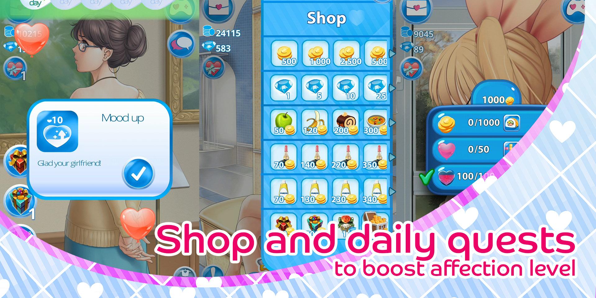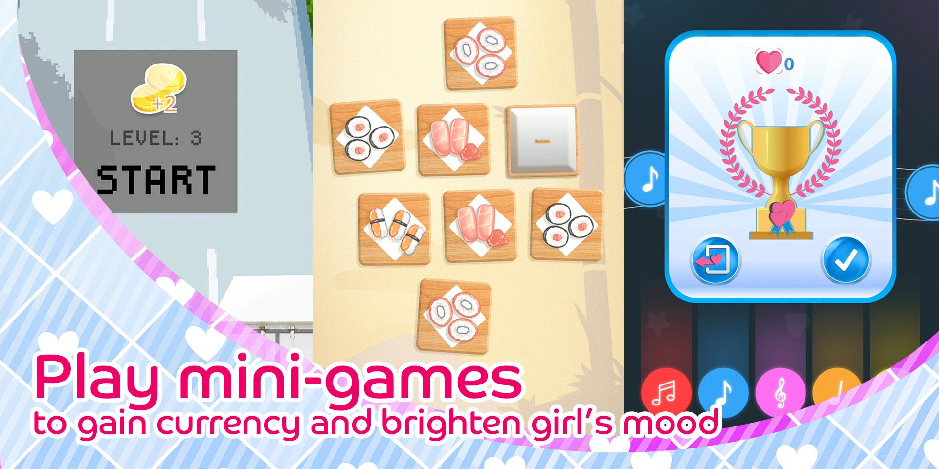 Meet beautiful ladies in My Pocket Girls - a stylish dating-application simulator. This romantic game will delight you with a variety of plots and well-designed gameplay. Each girl has a unique personality and as such she can cheer you up and teach you something new. Choose the one which suits your taste more or rotate dates with all of them! The application is compatible with the Android operating system version 4.1 and higher, and it does not take up much space in the memory of your smartphone. The game harmoniously combines a romantic line and exciting mini-games (puzzles, riddles, and games of the “3 in a row” format). Choose a girl for today! What kind of women do you like? Should she be sweet, mischievous or intelligent? Decide which one you want to chat with today and play anywhere anytime. The personalities of the girls in My Pocket Girls are worked out to the smallest detail; they may be spontaneous or touchy, giggly or romantic. Let each of them reveal the story of her life to you and keep you entertain every single minute. Each beauty dreams of a new boyfriend, so show your wit, court her in the way fit for a princess, and become a real god for each of them. Discover unique locations! Each character lives in her own world. Discover the locations where each of the girls feels most comfortable, get to know her even better thanks to the things she loves. Locations are drawn in all details; the graphics are marked by high resolution and stylish design. Therefore, playing will be not only interesting but pleasing to the eye as well. Chat! Women love through their ears. Therefore, chat them! The more you talk with your beautiful virtual darling, the higher the level of your relationship becomes. This will also help you get to know her better and understand what amuses her, what makes her sad, and what makes her happier. No need to reinvent the wheel, just select sentences from a ready-made list and wait for her to reply. Play mini games! Various but invariably fascinating mini-games will not only entertain you, should you unexpectedly get bored, but will also help you earn currency. And you will need a lot of it - after all, courting a pretty girl is not an easy task. The currency you have earned will help you take your girlfriend on a date, buy her beautiful clothes, jewelry or pastries in a confectionary. Complete all quests! A new quest is awaiting you in the game each day. Did you really think that relationships are easy? Successfully complete tasks and increase the level of affection the chosen girl has for you. Unlock new plot elements to advance to the next level and become a more attractive candidate for the beauty of your dreams. And a variety of fashion stores, stylish boutiques and jewelry stores will melt the heart of even the most unyielding beauty. New skins for locations and clothes! New skins for clothes and locations regularly appear in the game, which enables the girls to show off their new outfits. Indeed, trendy wardrobe is what makes every girl a little happier! And to make it even more interesting - buy new locations and add variety to your relationship!
