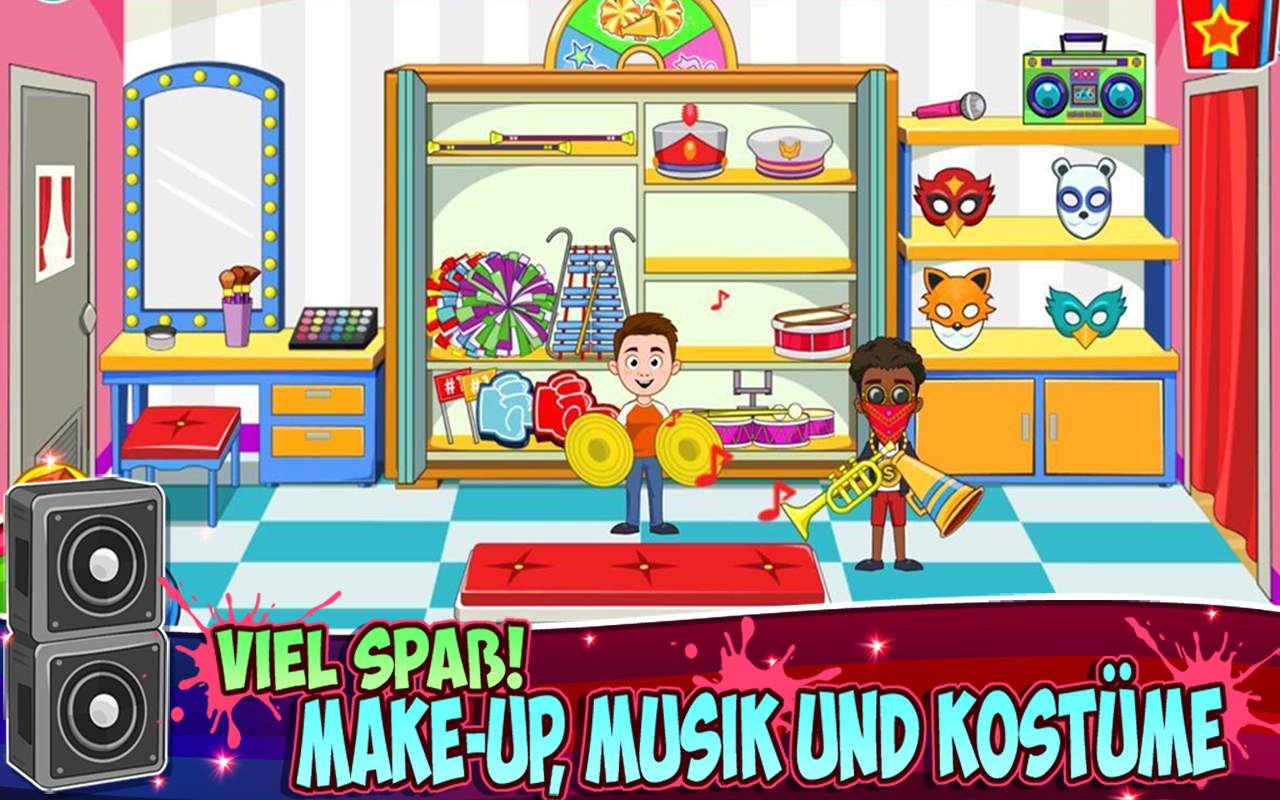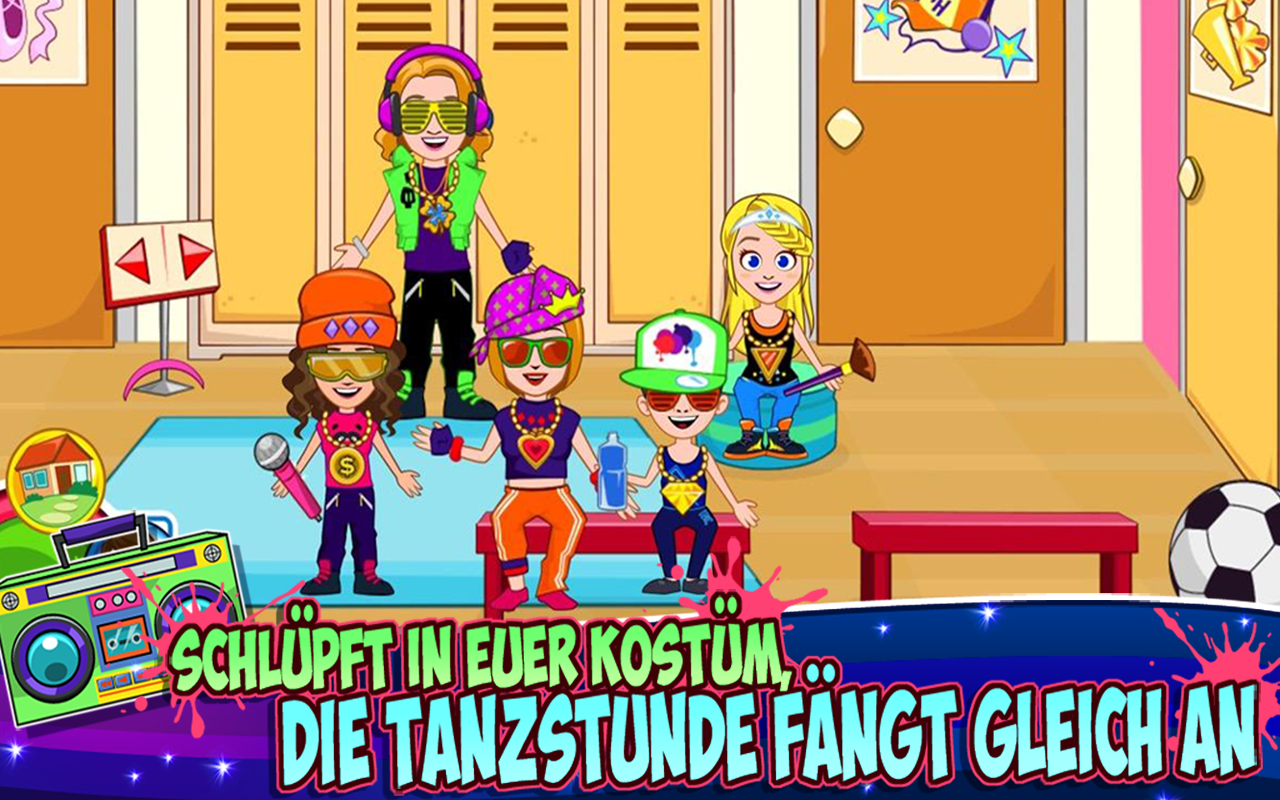 *** Einmal zahlen & immer spielen + GRATIS-Updates. Keine Werbeanzeigen und keine In-App-Käufe *** Willkommen bei Tanzschule, einer Ergänzung für eure Stadt, die ihr einfach haben müsst. Übt Ballett, sucht euch ein Kostüm für euren Cheerleading-Kurs aus, bereitet eure Tanzshow vor und gestaltet die Bühne selbst. Erkundet alle WITZIGEN Orte, Uniformen und Instrumente. Spielt mit all den neuen und bereits bekannten My Town-Figuren! WORUM GEHT ES IN MY TOWN? In den My Town-Spielen dreht sich alles ums Erleben, die Fantasie und um puren Spielspaß. Unsere digitalen Puppenhaus-Spiele ermöglichen es Millionen von Kindern, jeden Tag ein neues Abenteuer zu erleben! Unsere Spiele fördern die Vorstellungskraft und stressfreien Spaß für Kinder, beim Alleinspielen ebenso wie beim Spielen mit ihren Eltern. *** Einfach genug, dass Dreijährige mit ihren Eltern spielen können, spannend genug, dass 12-Jährige allein spielen können! *** SPIELT, SETZT EURE FANTASIE EIN & ENTDECKT Erfindet eure eigene Tanzschulen-Geschichte. Spielt mit über 40 Kostümen, 50 Requisiten und 14 Figuren. Werdet ihr Ballett üben oder die perfekte Bühne für eure moderne Tanzshow bauen? Alles ist möglich in My Town: Tanzschule. Entdeckt bei jedem Spielen etwas Neues! *** Über 2 Millionen Eltern & Kinder weltweit haben My Town heruntergeladen! *** FUNKTIONEN * 3 Tanzkurse – Ballett, moderner Tanz & Cheerleaders. Zu allen Kursen gibt es eigene Kleidung, Kostüme, Instrumente, Musik und Requisiten für die Bühne. * Neue Figuren – gibt es in allen neuen My Town-Spielen, Tanzschule ist da keine Ausnahme. Neben der bekannten My Town-Familie stellen wir nette neue Figuren wie die Tanzlehrer und die Kinder vor, die in den Tanzstunden mitmachen. *Tanzshow-Bühne – Baut die perfekte Bühne für die perfekte Tanzshow. Besucht das Backstage-Lager und wählt die perfekten Requisiten für eure Show aus. Konfetti-Kanone, Feuerstrahl, Schwäne und Lichter. Sucht den Hintergrund aus und steuert die Musik. Wenn ihr es euch vorstellen könnt, könnt ihr es erschaffen. Alles ist möglich in My Town: Tanzschule! * Viele spannende Bereiche für euch zum Entdecken und Spielen *** Unsere Spiele werden ständig von führenden Lehrer- und Eltern-Blogs empfohlen ** *** Wir haben eine durchschnittliche Bewertung von 4,8 / 5,0 Sternen im App Store *** EMPFOHLENE ALTERSGRUPPE Kinder von 3-13: Die Kleinsten spielen mit ihren Eltern, während die Größeren allein spielen. Komplette Kindersicherung: Sicheres Spielen, selbst wenn ihr nicht dabei seid. Keine Werbeanzeigen oder In-App-Käufe. Neue Orte bedeuten neue Interessen und eine Spieldauer von insgesamt über 1 Jahr!