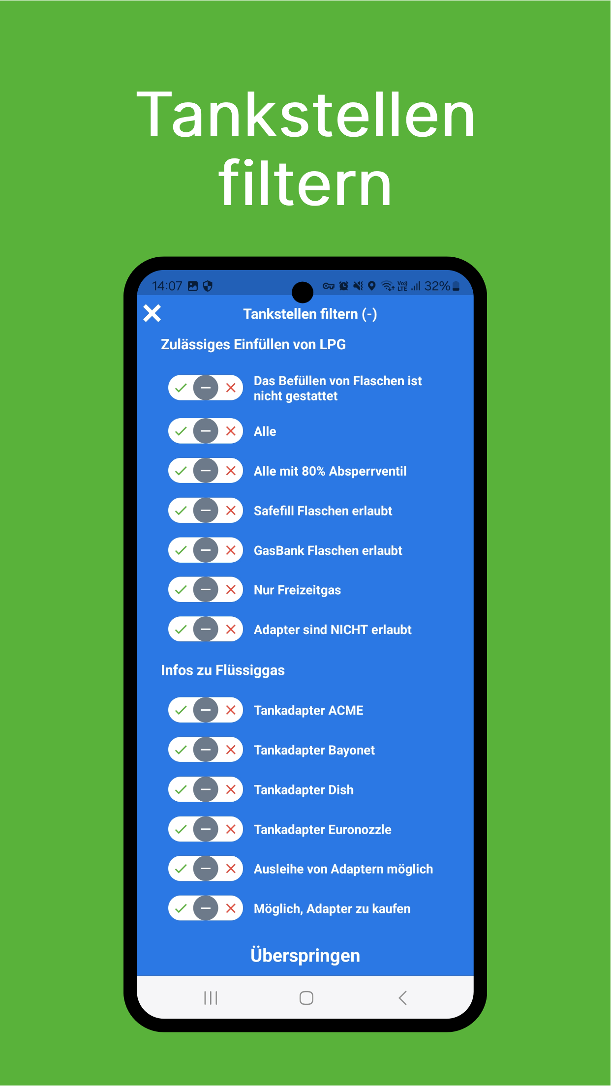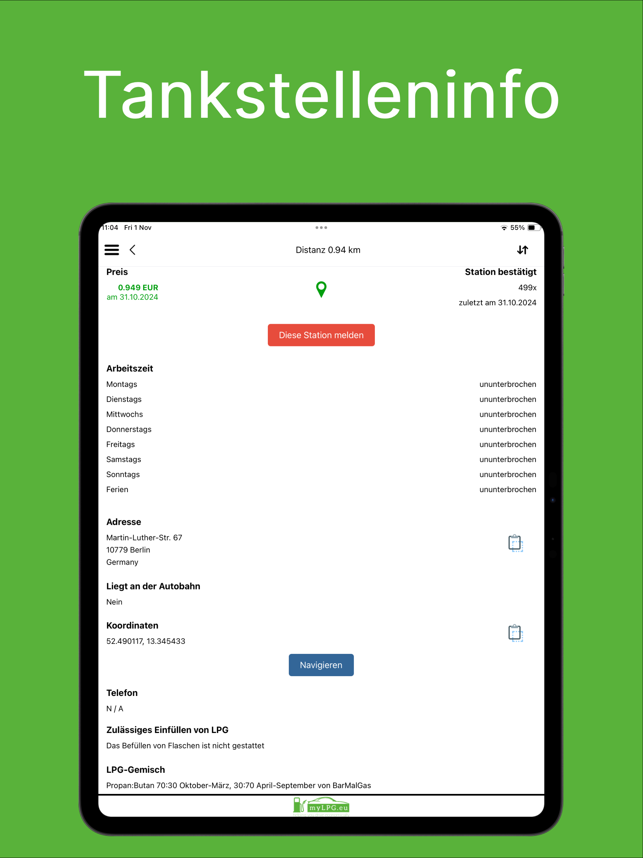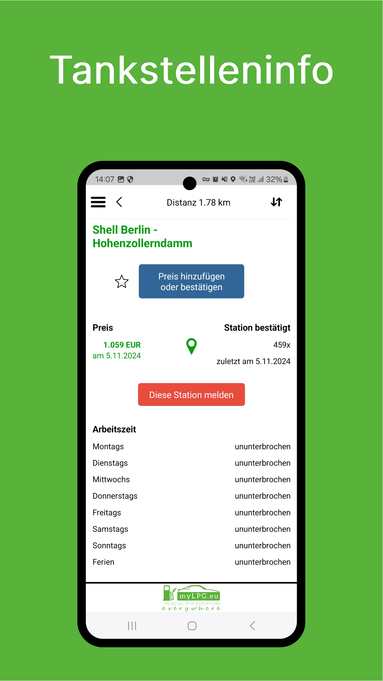 - Tankstelle melden (kein LPG, Tankstelle geschlossen, verkauft wieder LPG,...)
