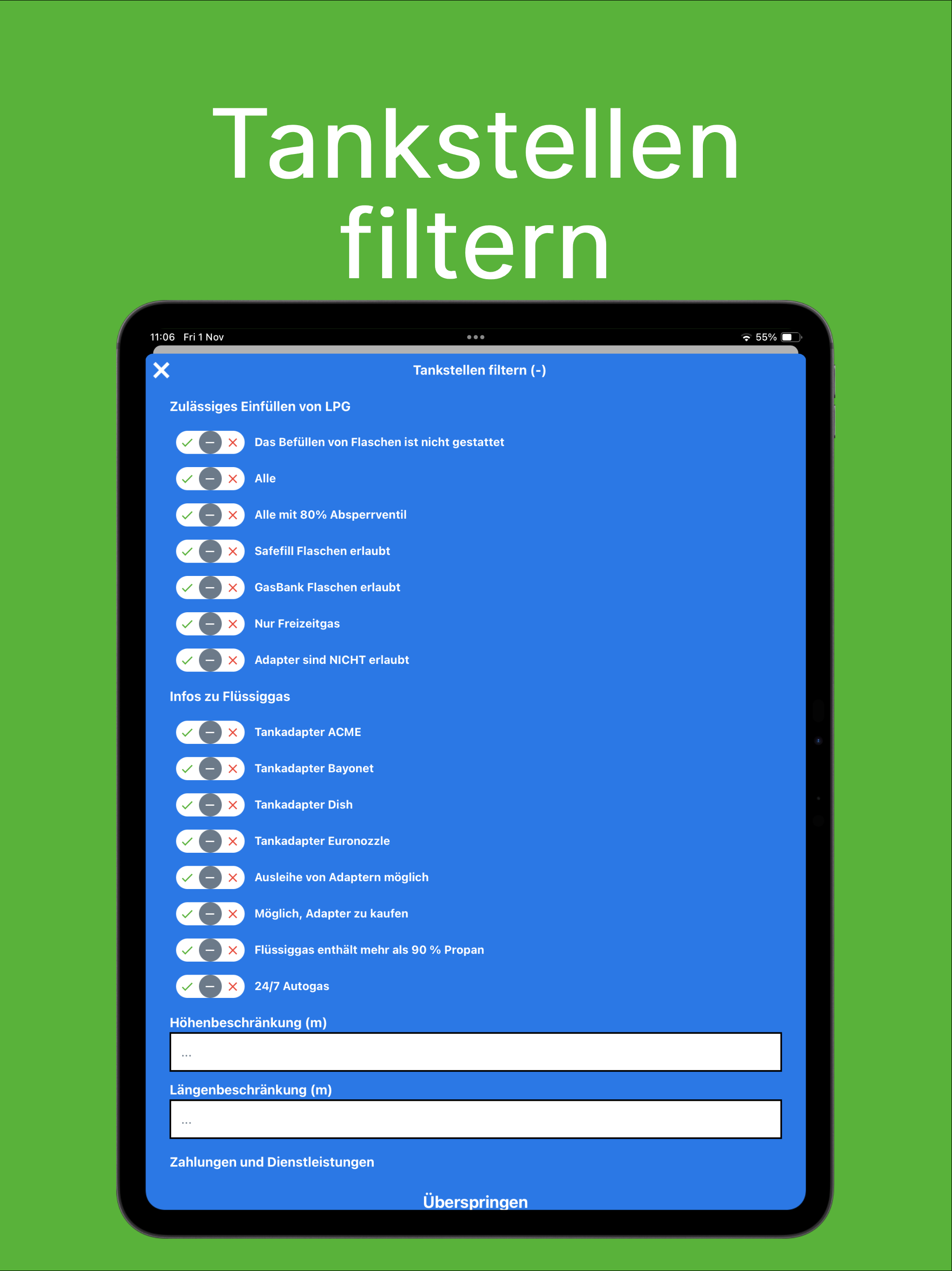 - viele Filteroptionen (für Autos, für Wohnmobile, auf Autobahnen, 24/7 LPG, Anschlüsse,...)
