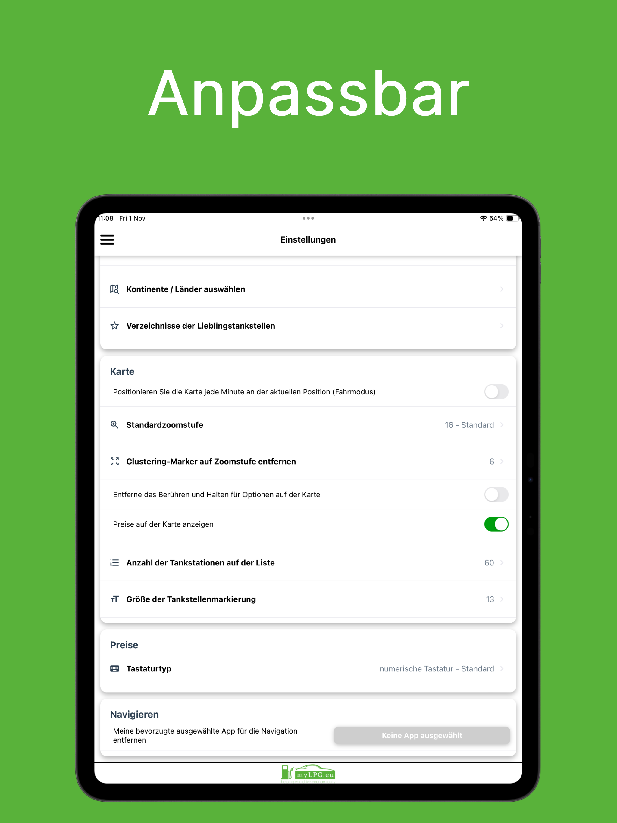 - mehr Anpassungsoptionen (Markierungsgröße, Standardzoom, Anzahl der Tankstellen, …)