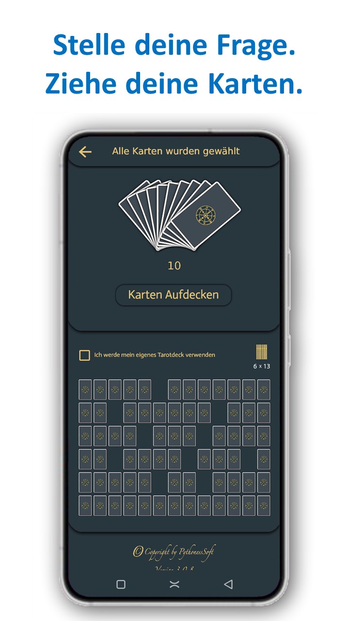 • Lege Karten digital oder mit deinem eigenen physischen Tarotdeck