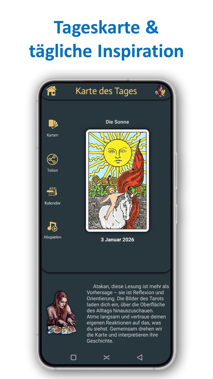 Entdecke die Weisheit aller 78 Tarotkarten, starte deinen Tag mit der Karte des Tages und gewinne neue Einsichten in Liebe, Beruf und Lebensentscheidungen.