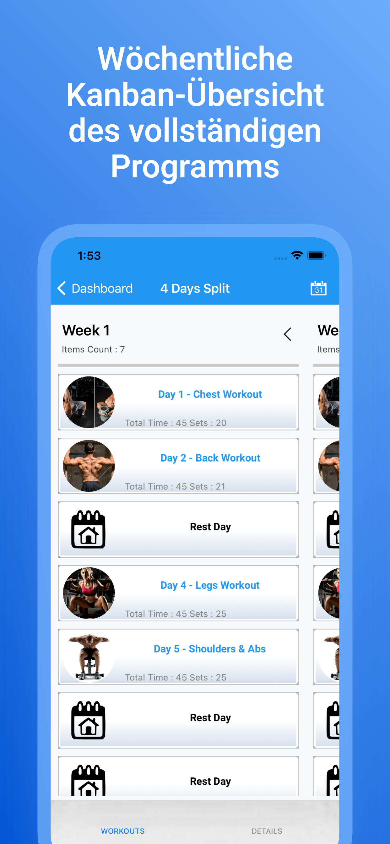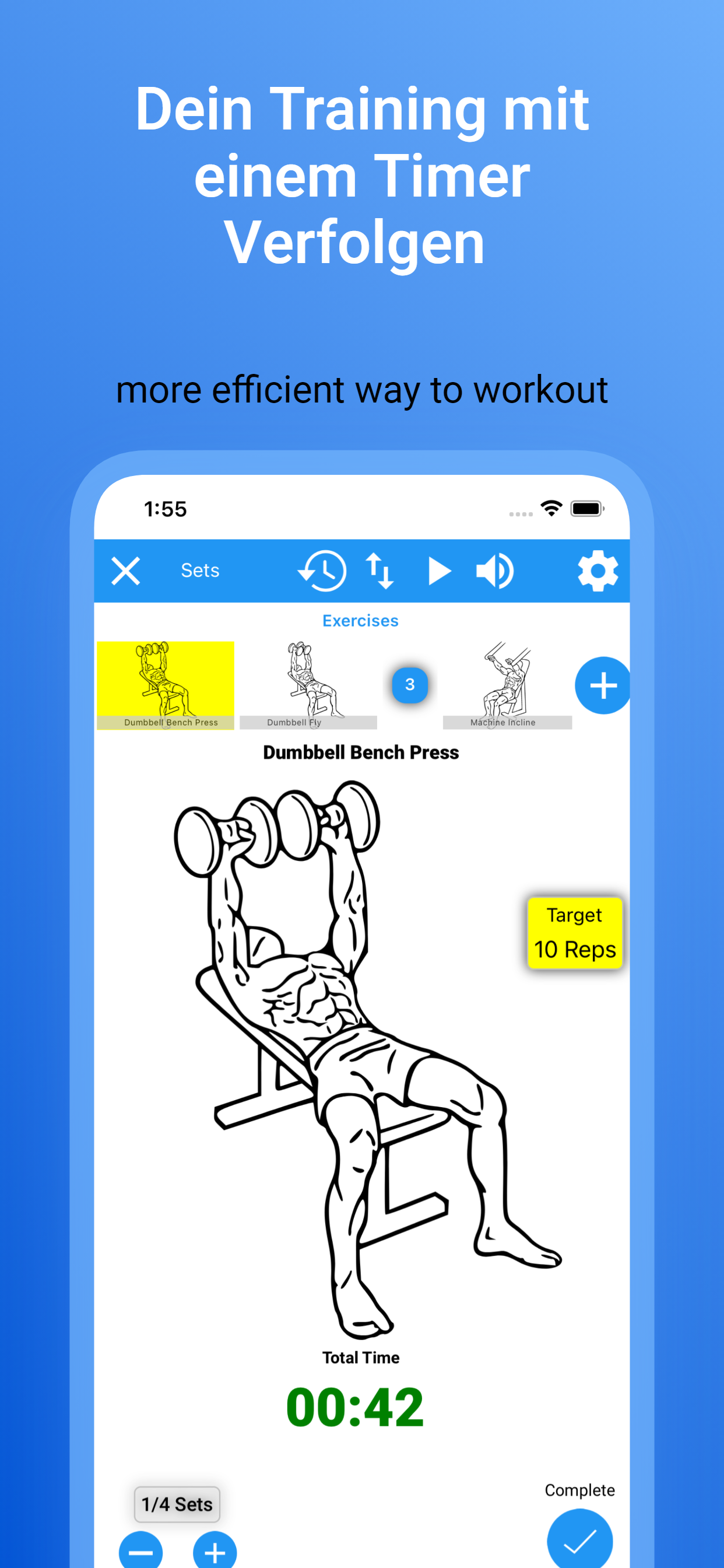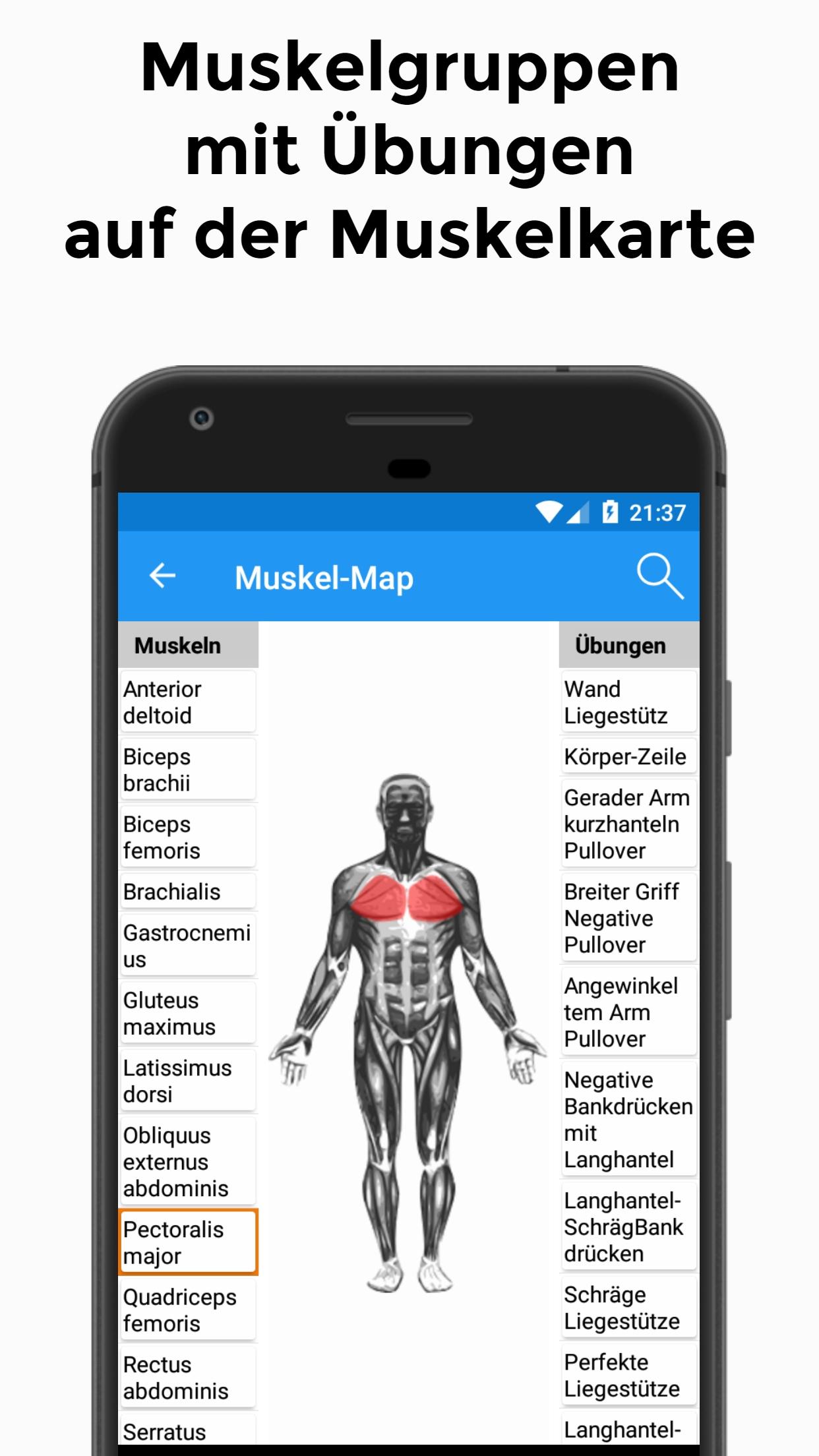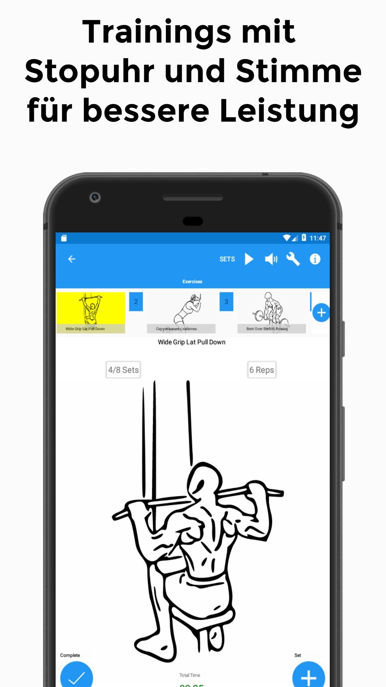 myWorkout ist eine Fitness- und Trainingsanwendung für Frauen und Männer, für jedes Alter mit reichhaltigen Übungen, die im Fitnessstudio oder zu Hause mit oder ohne Geräte ausgeführt werden können. Die myWorkout Android-App hat auch eine begleitende Wear OS-App und eine Samsung Tizen Watch-App, die man zusammen mit der Handy-App verwenden kann. Anwendungsziele zu helfen; Gewicht verlieren, Gewichtszunahme, Muskelaufbau, Krafttraining, Bikinifigur, in Form kommen, Fitness, Kondition und Kraft verbessern, Six Packs(Waschbrettbauch) bekommen, größere Arme, größere Brust, V Taper Körper, starker Rücken, starke Beine, gesunder Lebensstil. ★ Sie finden viele Übungen, Trainings und Langzeitprogramme. Die werden Ihnen in Form, muskulös und gesünder machen. ★ Mit über 300 Übungen mit voller Schritt zu Schritt Anleitung und animierte Demonstration von Übungen können Sie Ihre Trainings und Trainingsprogramme erstellen. ★ Holen Sie sich Ihre sechs Packs, Bizeps Waffen, breite Schultern, große Brust, starke Arme, V Form Rücken mit dieser App. EIGENSCHAFTEN ✓ Kostenlos zu verwenden und kostenlos eigene Workouts zu erstellen und Workouts zu verfolgen und auf Deutsch. ✓ 300+ Übungen zum Muskelaufbau, Abnehmen, Stretching, Kraftsteigerung ✓ 35+ Trainingspläne ✓ 20+ vollständige Trainingsprogramme ✓ Fitness- und Bodybuilding-Applikation, die offline und online Funktionert. ✓ Sie können Ihre Trainings in einem Training-Kalender planen. App wird Ihre Trainingstage und Zeiten erinnern. ✓ Es gibt viele vordefinierte Trainings und Programme für jede Ebene von Anfänger bis Fortgeschrittene. ✓ Sie können Ihre Programme mit Workout-Logs verfolgen. Eine Anleitung Stimme wird Ihnen helfen, Ihr Training effizient zu verwalten. ✓ Schöne MUSKELKARTE zeigt Ihnen, welche Muskelgruppen mit welchen Übungen bearbeitet werden können. ✓ Sie können auch Ihre Körpermaßnahmen eingeben und Ihre Maßnahmen verfolgen. EINIGE TRAININGS IN DER APP -Brust und Bizeps -für Anfänger -Rücken und Trizeps für Anfänger -Beine &Schultern für Anfänger -Brust Training -Rückentraining -Beine-Training -Schultern und Bauch -Bizeps und Trizeps -Große Bein-Training -Brust und Rücken (German Volume Training) -Brust und Schultern -Oberkörper Training -Ganzkörper-Home-Training -Körper-Form-Home-Training mit Körpergewicht -Rüken und Bizeps Training -Booty Training zu Hause -Beine Training (Isolierung) -7 Minuten Training -Tabata Training- 10 minuten -Rüstung Abdominale -Tägliches Training -Hinlegen Training zu Hause -Gesamtabdominale Training -DTP- Brust & Rücken Training -DTP- Beine & Obere Abdominale -DTP- Arme und Untere Abdominale -DTP-Schultern & Oberfalle -Abdominals auf Feuer -Hypertrophie / Schultern und Trapezius -Hypertrophie / Beine und Bauchmuskeln -Hypertrophie / Rücken und Bizeps -Hypertrophie / Brust und Trizeps -300 Spartaner Abdominale -Madcow 5 × 5 -Powerlifting Anfänger VOLLE TRAININGSPLÄNE IN DER APP * 3 Tage Split * 4 Tage Split * 2 Tage Split * 5 Tage Split * DTP-Programm für Muskeldefinition * Haustraining 4 Wochen * Hypertrophie-Programm * Madcow 5x5 * Powerlifting für Anfänger * Gesäß und Bauch * Magerer Muskelaufbau * 12 Wochen Heimtrainingsplan * Ganzkörper-Trainingsplan * FST-7 Trainingsplan * Ganzkörper - Heimtraining Es gibt viele Fitness-Anwendungen auf dem Markt, aber alle von ihnen hat etwas fehlt oder Feature, das Sie gerne haben, ist nicht da. Aus diesem Grund haben wir diese App erstellt, um alle diese Features zu haben. Wir sind offen für jeden Vorschlag oder Feature-Wünsche auch. Hervorgehobene Features dieser Anwendung sind unten.