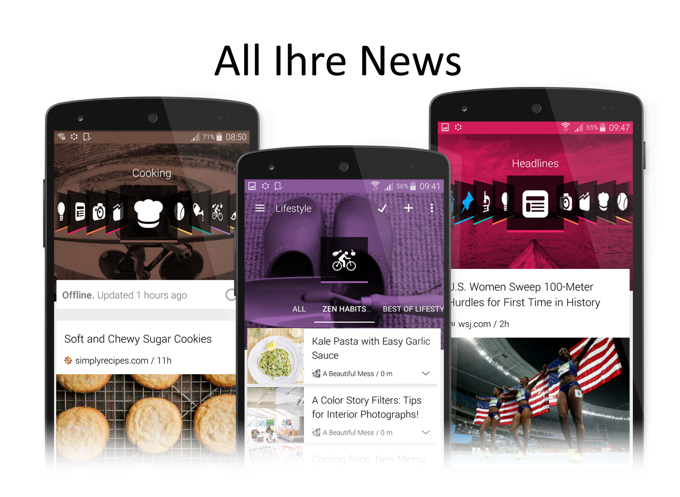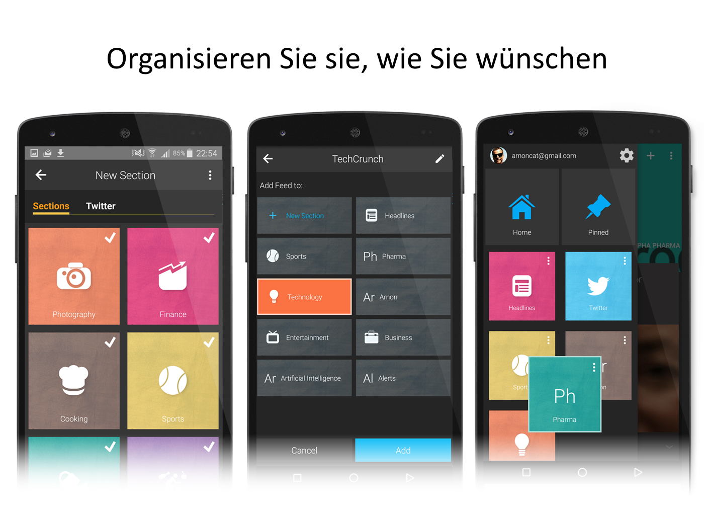 Organisieren Sie all Ihre Nachrichten und Zeitschriften-Inhalte in einer einzigen, schönen App!