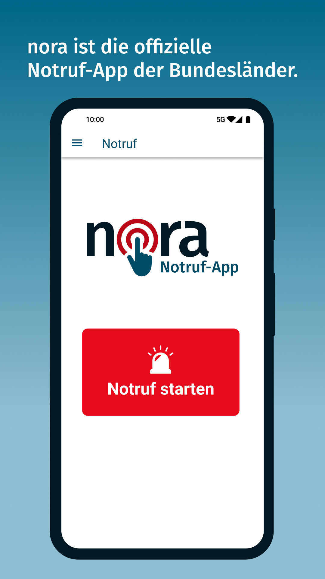 Mit der kostenlosen Notruf-App nora erreichen Sie direkt die zuständigen Einsatzleitstellen von Polizei, Feuerwehr und Rettungsdienst - genauso, als würden Sie die Notrufnummern 110 oder 112 anrufen.