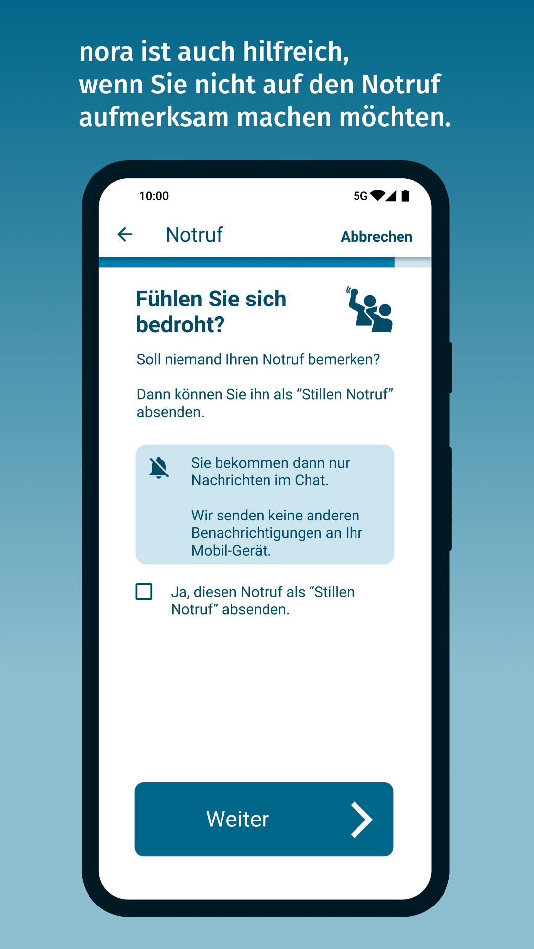 Deshalb gibt es in der App für bedrohliche Situationen die Funktion “Stiller Notruf”.