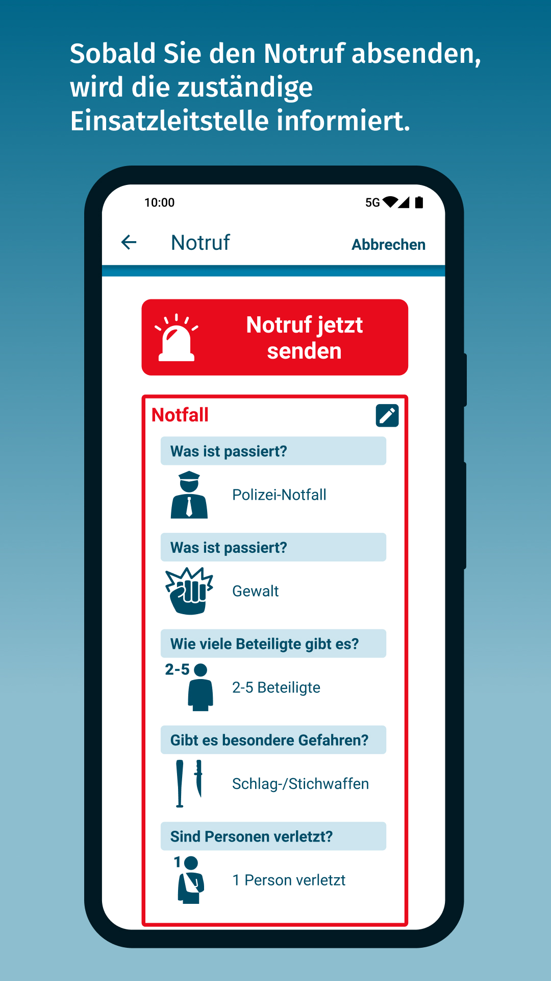 Damit ist die Notruf-App für Menschen mit Hör- und Sprachbehinderungen eine gleichwertige Alternative zum Sprach-Notruf.