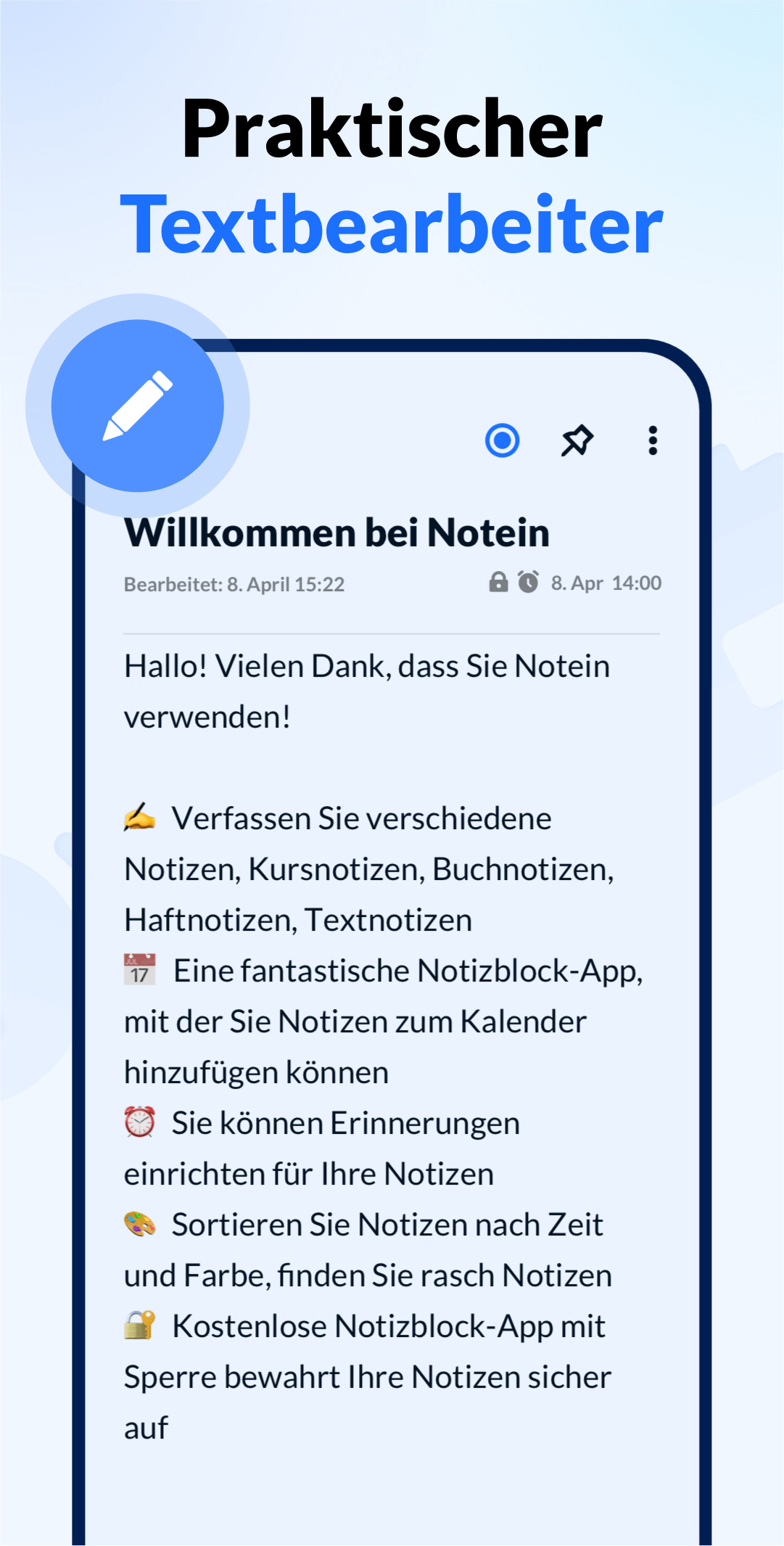 Testen Sie Notizblock/Notizen/Listen - Notein mit Widget für eine ausgezeichnete Notizbearbeitungserfahrung!