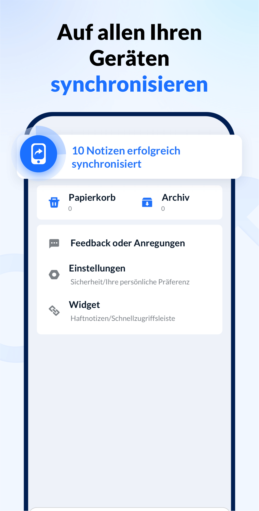 Haftnotiz-Widgets, Notizerinnerungen, Notizsperre etc. Durch all diese Funktionen wird das Erstellen von Notizen einfach, rasch und sicher. Machen Sie Notizen wie mit Stift und Papier.