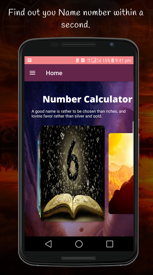 Numerologie App wird auf Ihren Namen Nummer Berechnung predict basiert und berechnen Sie Ihre Natur, Allüren, Element, glückliche Farbe, Glückszahlen, glücklicher Tag, Glück Metall und Freundschaft Zahlen.