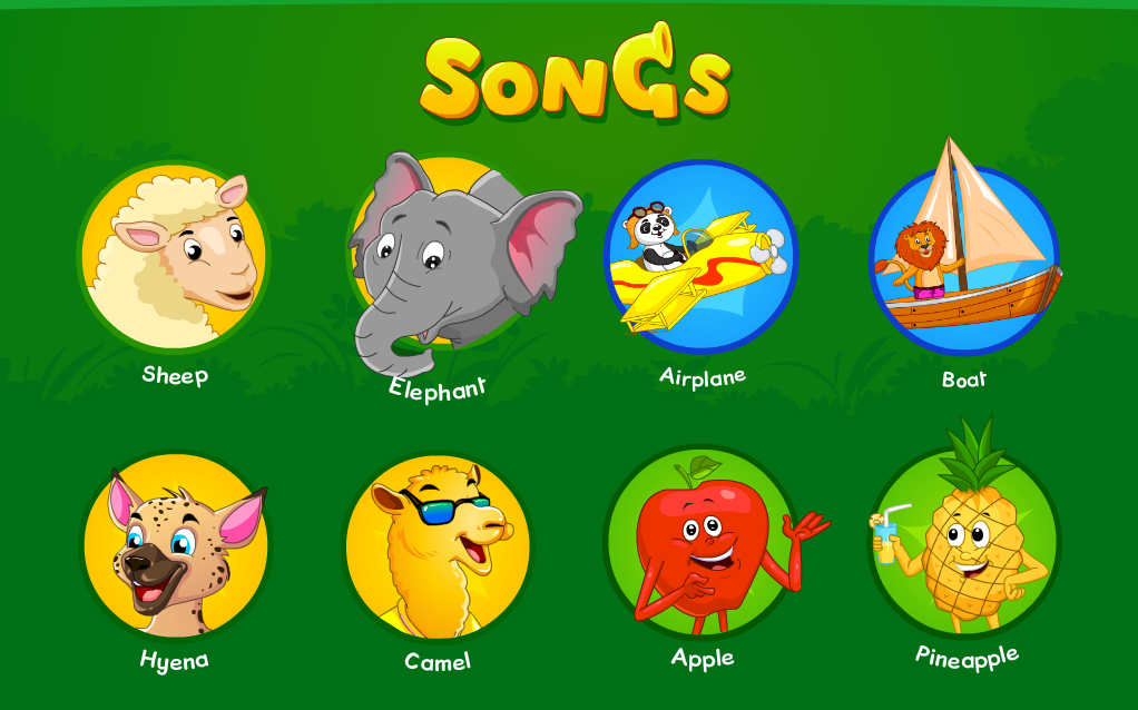 Lustige und originelle Kinderlieder-Videos zum Lernen:* ABC-Lautschrift & ABC-Lieder, erste Wörter, Früchte, Fahrzeuge, Tiere und vieles mehr.
