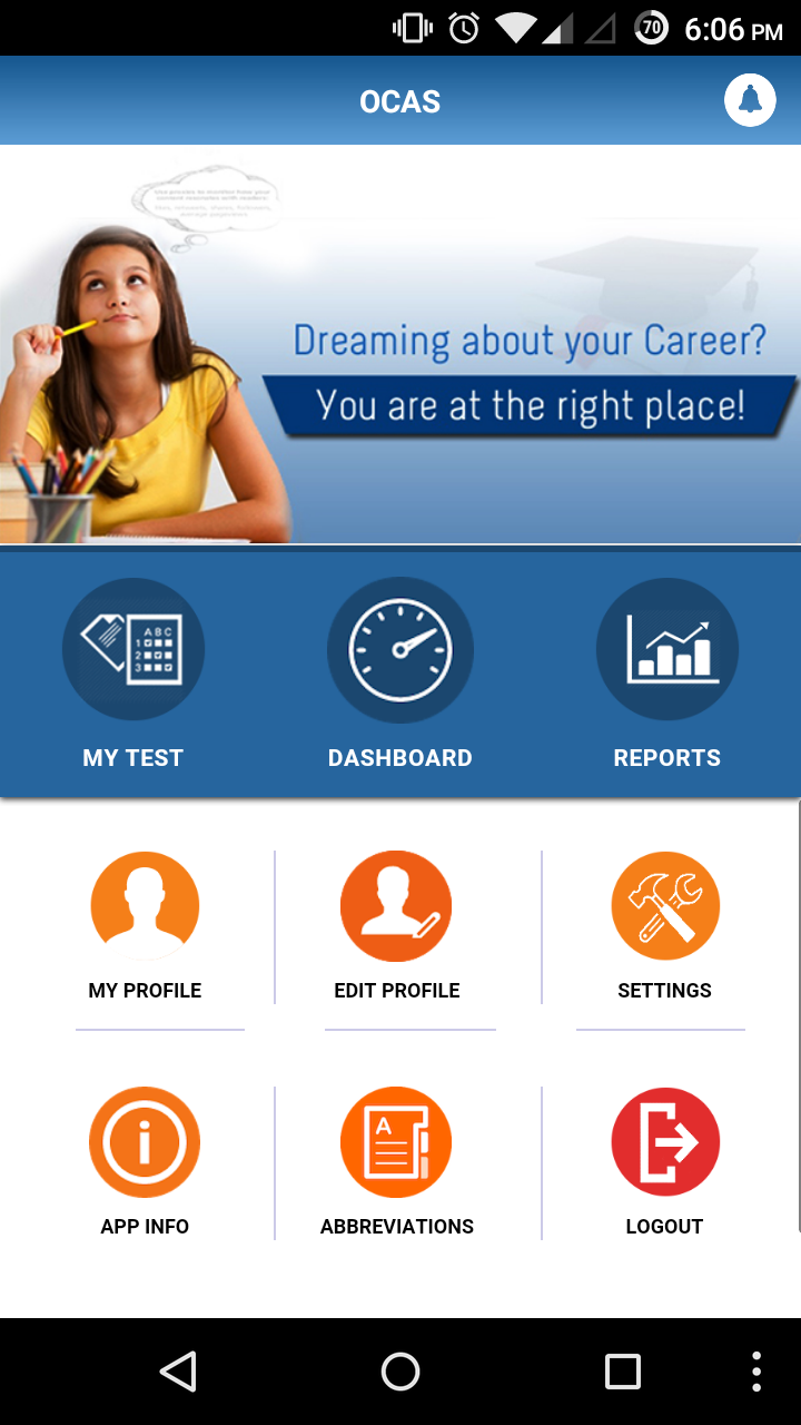 What is OCAS? · A comprehensively designed, skill based competitive assessment for school students. · Examines the learning levels of students and encourages them to achieve higher learning goals. · Guides schools to redefine the learning objectives and their teaching standards. Salient Features of OCAS · Based on the Blooms Taxonomy. · Scientifically designed graded questions created in partnership with Kyoshi, a subsidiary of EduLab, Japan. · Evaluates the academic skill levels of students and helps them achieve desired learning goals. · Provides Comparative Analysis to students and schools. · Exhaustive and detailed reports which give a clear understanding of the performance of students. · Guides schools to redefine their learning objectives and teaching standards. · Promotes deeper level of learning. Benefits · The comparative analysis determines the learning levels of students and helps them achieve higher learning goals. · It provides an objective, in-depth assessment of students skills in key learning areas that are essential for success at school, work and in life. · It empowers students and helps in building self-confidence and motivates them to excel. Now, after identifying the need for a mobile based education for Indian students, OCAS has launched an android app that enables students to prepare for exams at their finger tips over their mobile phones. This application enables students to give test in an online as well as offline mode in which user can download and give exam in offline mode and result will automatically be synchronized to the online system. Application also has practice tests to get a hand on experience before the exam. Download this android app on your mobile and take a step forward in your exam preparation. Some of the Key Features: - More than 20000 questions that enhances all your skills. - This application will work online as well as in an offline mode, which means no internet connection will be required but only once the users has downloaded the test. Rate us and Share with your Friends. Prove you're a genius with The OCAS Test.