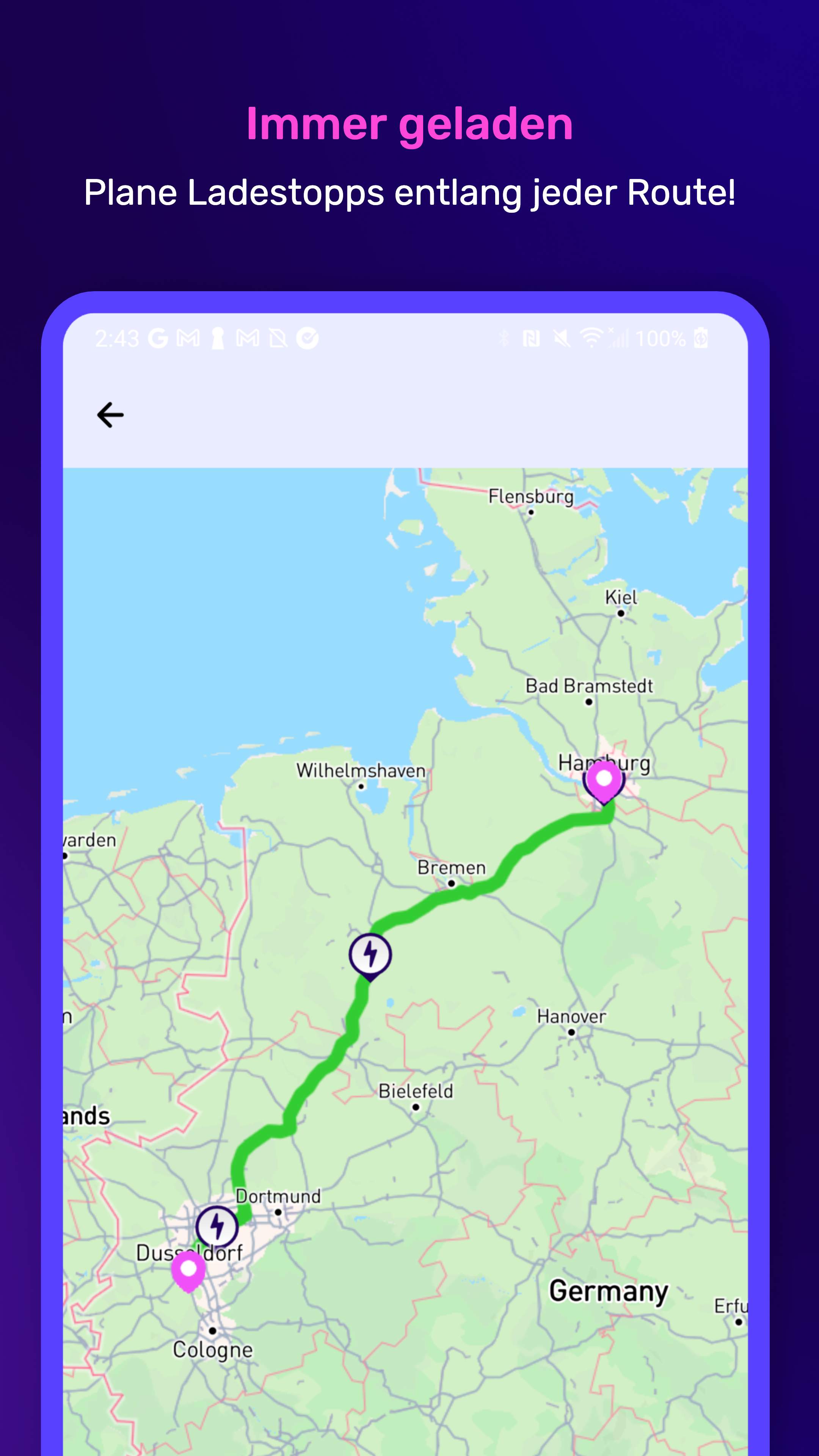 🚏 Routenplaner. Plane Ladestopps entlang deiner Route für Langstreckenfahrten.