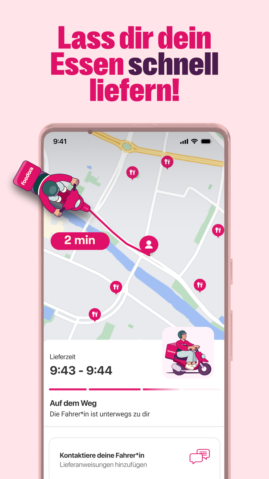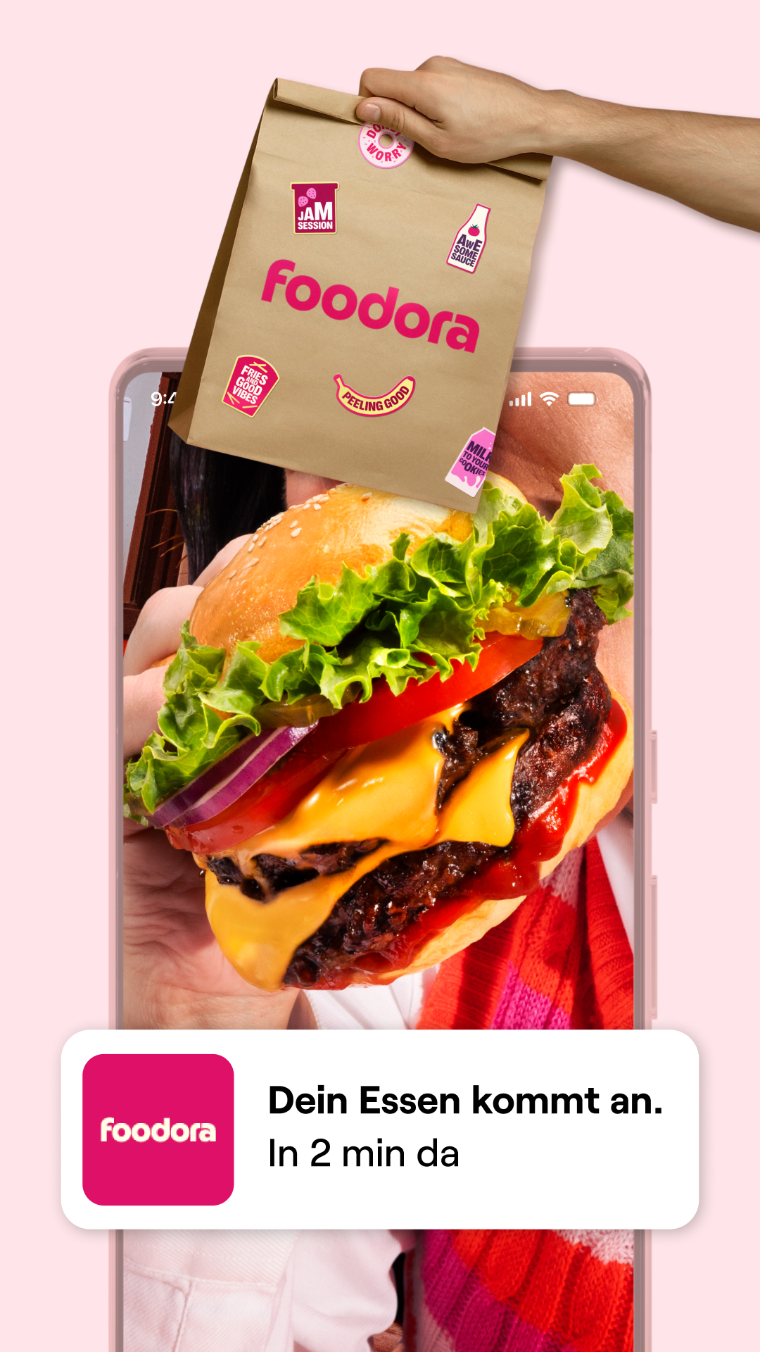 ✔ Behalte die Restaurant- oder Supermarkt-Bestellung bei deinem foodora Lieferservice per Push-Nachricht im Auge.
