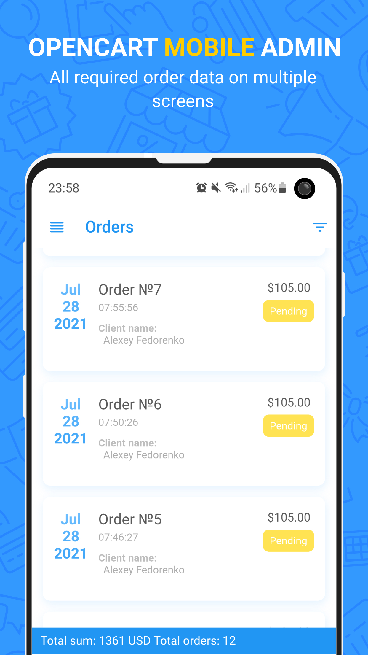 Mit der mobilen App Mobile Admin PRO für die OpenCart-Erweiterung können Sie schnell und einfach grundlegende Informationen zu Produkten anzeigen, den Status von Bestellungen und Kundeninformationen ändern.
