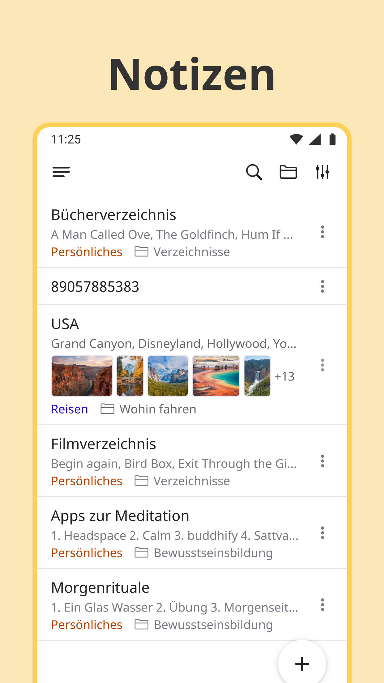 ● in einem Notizbereich mit baumstrukturierten Ordnern können Sie leicht durch Ihre Checkliste von Notizen navigieren und wichtige Informationen zur Hand haben
