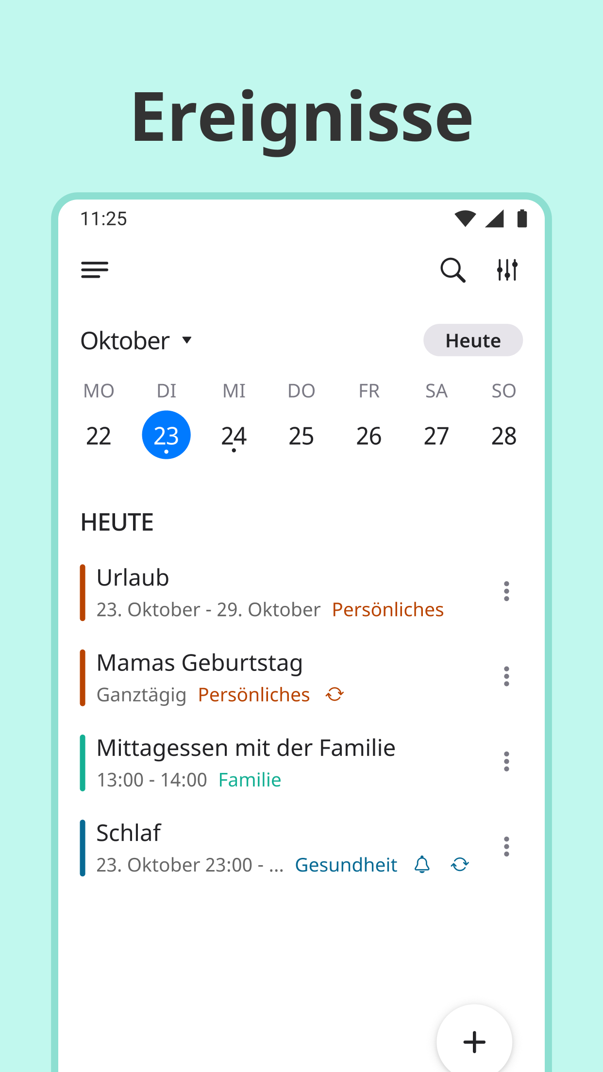 ● durch die Verwendung von Erinnerungen mit einzigartigen Klingeltönen & wiederkehrenden Aufgaben & To-Dos, werden Sie nicht mehr die Geburtstage Ihrer Freunde oder ein plötzliches Ereignis, das in einer Woche stattfinden wird, vergessen