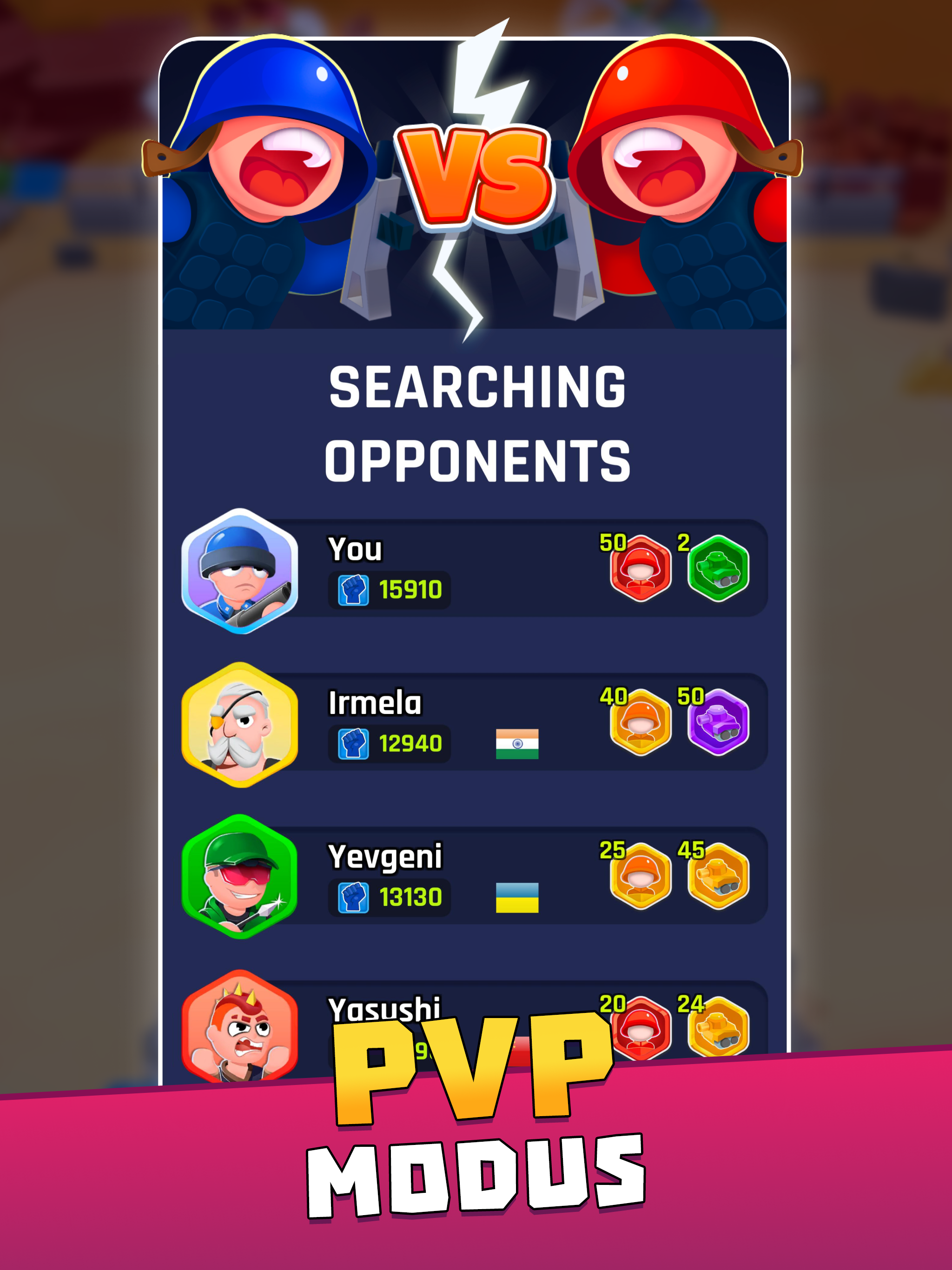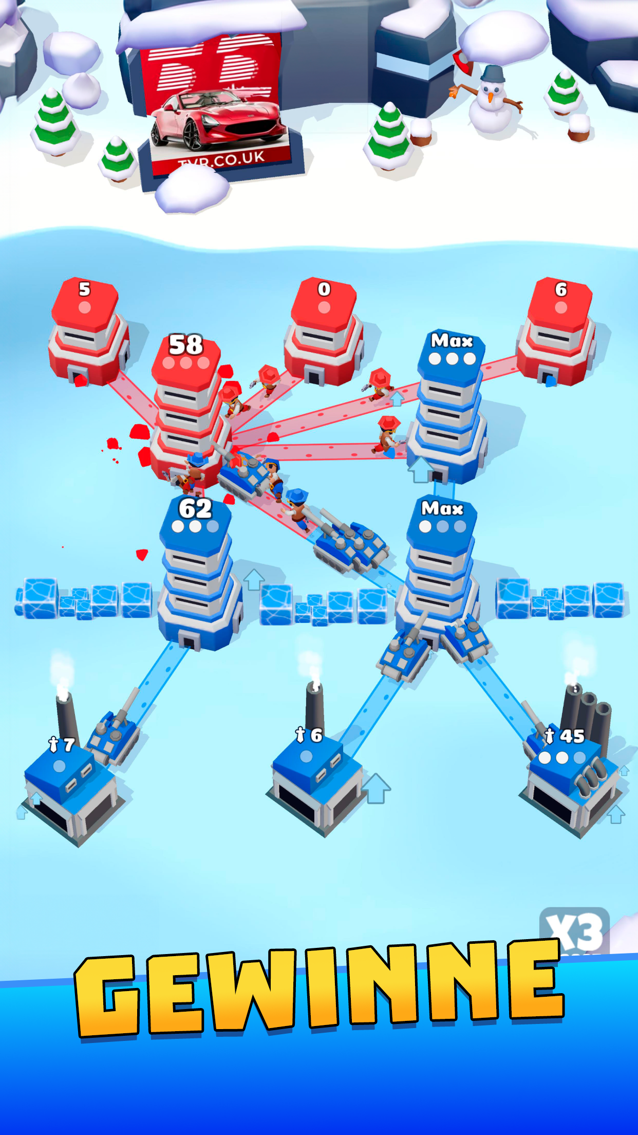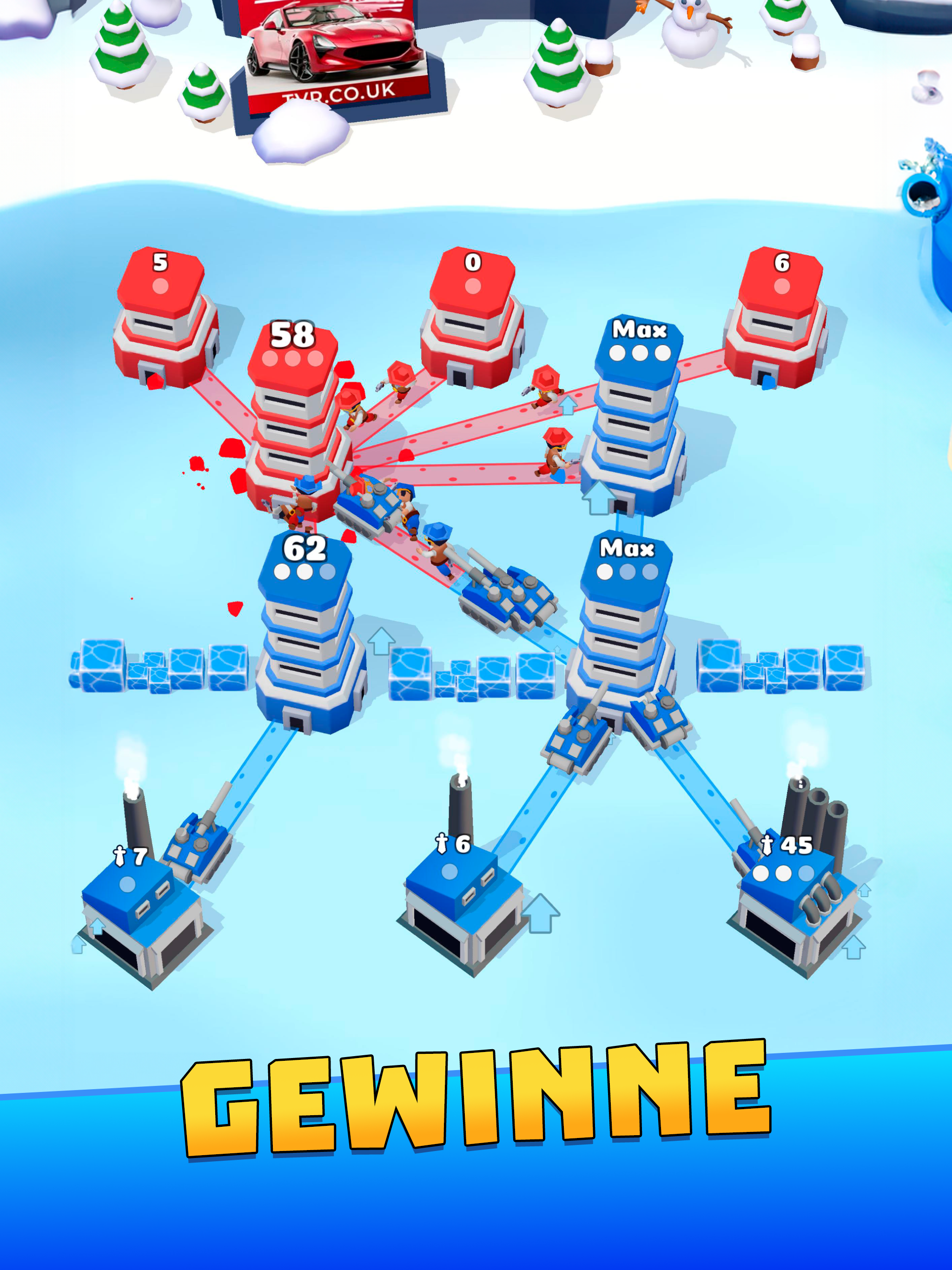 WUNDERBAR SYMMETRISCHE KRIEGSFÜHRUNG! 🪖 Wende das Blatt und gewinne den Krieg in diesem schlichten Taktikspiel, das garantiert alle Armlehnen-Befehlshaber und Taschen-Napoleons auf den Plan ruft. Stürze dich mit einem einzigen 👉 Wisch in den Kampf und sieh zu, wie deine kleinen Kämpfer den Feind niederstrecken. Teile deine kleinen, süßen Streitkräfte mit Können und Präzision auf, um deine Position zu halten und die gegnerischen Armeen zu übertrumpfen. Nutze dein militärisches Geschick und schlage den nächsten Turm, um deinen Eroberungsfeldzug fortzusetzen und in diesem schnellen, spaßigen und manchmal vertrackten Strategiespiel, das sich von der Konkurrenz abhebt, an die Spitze zu gelangen. 🔥 BUNTE KRIEGSKUNST! 🔥 ★ Aww, Krieg! Lass dich nicht vom niedlichen Erscheinungsbild der Armeen täuschen. In diesem kompakten und bunten Kriegsspiel braucht es dennoch Nerven aus Stahl, einen eisernen Willen und eiskalte Berechnung, um den Feind zu schlagen und alles einzunehmen. Echte Strategie und Taktik sind nötig, um jeden Kampf zu gewinnen, und in jedem Level kann sich von einer Sekunde auf die nächste das Blatt wenden. Bleib wachsam, behalte den Feind im Auge und wische schnell, um dir den Sieg in diesem Kriegsspiel zu sichern. ★ Lass dich von Niederlagen nicht runterziehen – du kannst vergangene Schlachten mit deiner Armee immer wieder erleben und dich weiterhin an diesem täuschend einfachen, aber teuflisch schwierigen Militär- und Eroberungsstrategiespiel ausprobieren, das dir erbitterte Kriegsführung und taktische Ränkespiele in befriedigender Bit-Größe bietet. ★ Zeit der Türme! Nutze dein taktisches Gespür, um in den Turmverteidigungs-Levels voranzukommen und neue Turmtypen freizuschalten, einschließlich Artilleriegefechtsständen und Panzerfabriken. Andere Spielmechaniken wie mehrere Gegner, Hindernisse, Blockaden und Minen zeigen, dass der Krieg nie vorüber ist, und dass es immer neue Herausforderungen gibt, um diesem Spiel mit hohem Suchtfaktor noch mehr Würze zu verleihen. ★ Überragende Erfolge – finde taktische Lösungen, um jeden Kampf zu gewinnen, damit du neue Gebiete freischalten und deine Eroberungen in neuen Gefilden fortsetzen kannst. Es warten wunderschöne Hintergründe, die das ohnehin schon äußerst stilvolle (und niedliche) Design des Spiels noch untermalen. ALL DEINE TÜRME SIND UNSER! 🎖️ Suchst du nach einem mobilen Strategiespiel, das sowohl echten Spaß als auch eine ausgeklügelte taktische Herausforderung bietet? 💣 Tower War hebt die Verteidigung der Türme auf eine neue Stufe der Unterhaltung und des Einfallsreichtums, mit intuitivem Gameplay und außergewöhnlich cleverem Spieldesign, das dich immer wieder auf das Schlachtfeld zurückkehren lässt, um weitere mitreißende Kriegsspiele zu spielen. Bekenne Farbe, mach deinen Finger zum Wischen bereit und beschwöre den Kriegsspaß herauf, indem du Tower War jetzt herunterlädst und dich direkt in den Kampf stürzt! Datenschutzrichtlinie: https://say.games/privacy-policy Nutzungsbedingungen: https://say.games/terms-of-use