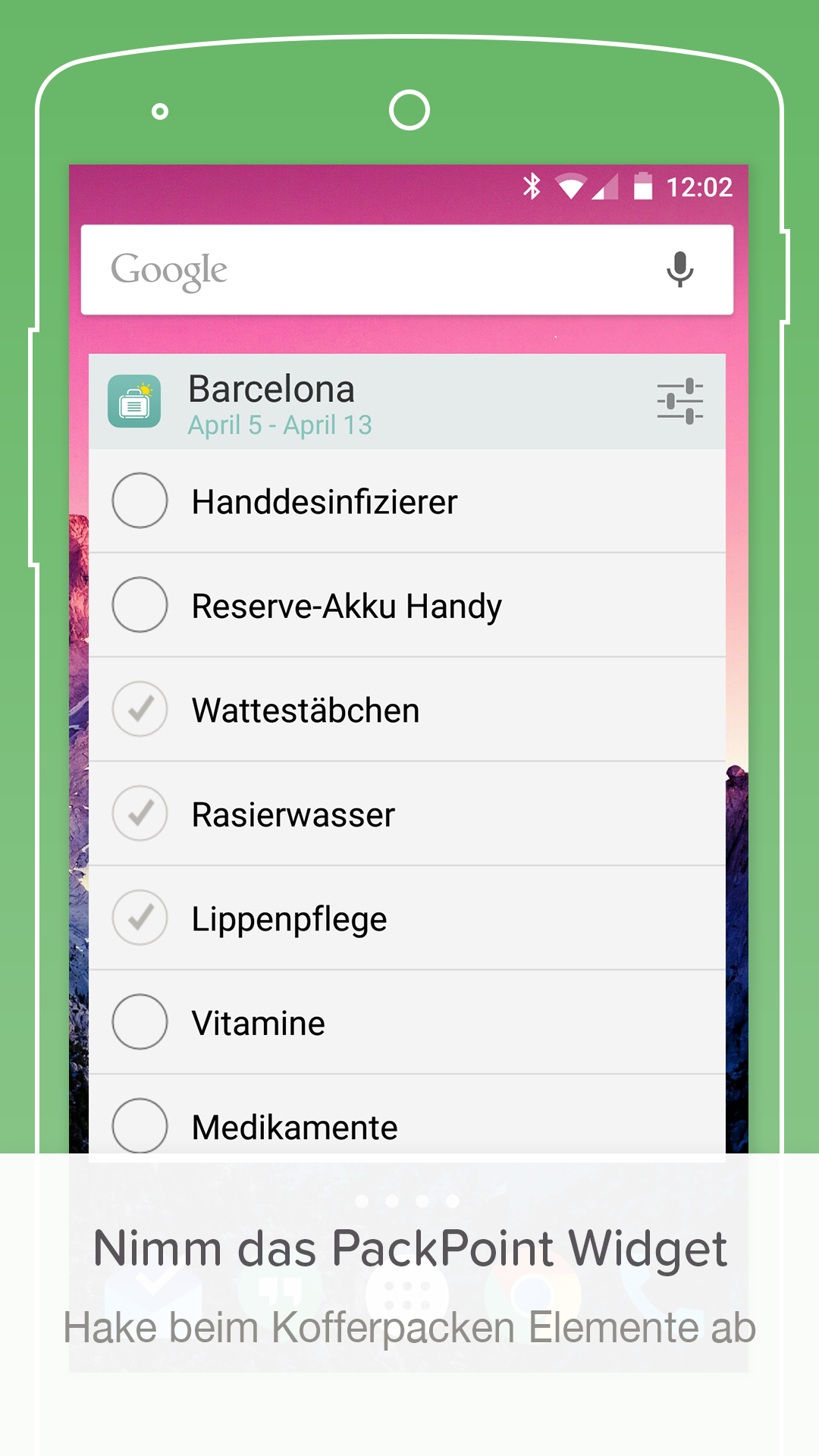 – Lege das PackPoint Widget auf den Startbildschirm