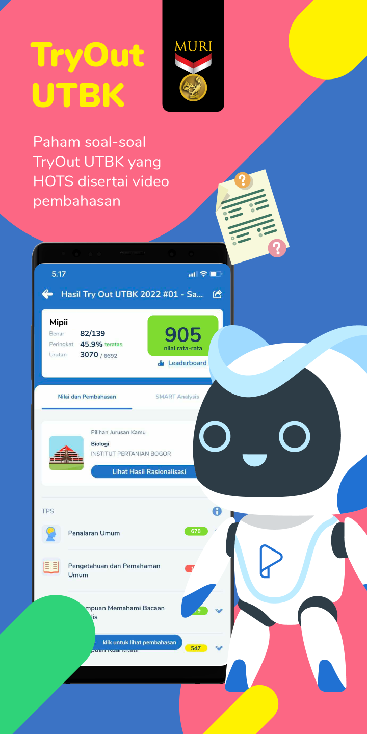 Sie können mit der führenden UTBK-Lernanwendung in Indonesien studieren, die jedes Jahr Zehntausenden UTBK-Kämpfern geholfen hat, sich für ihre Traumuniversität zu qualifizieren.